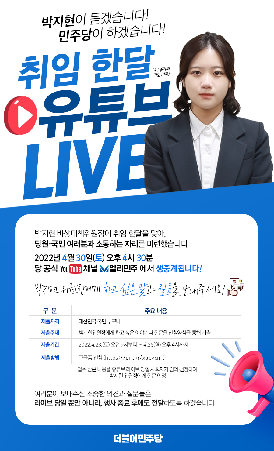 '박지현 비상대책위원장 취임한달 유튜브라이브'는