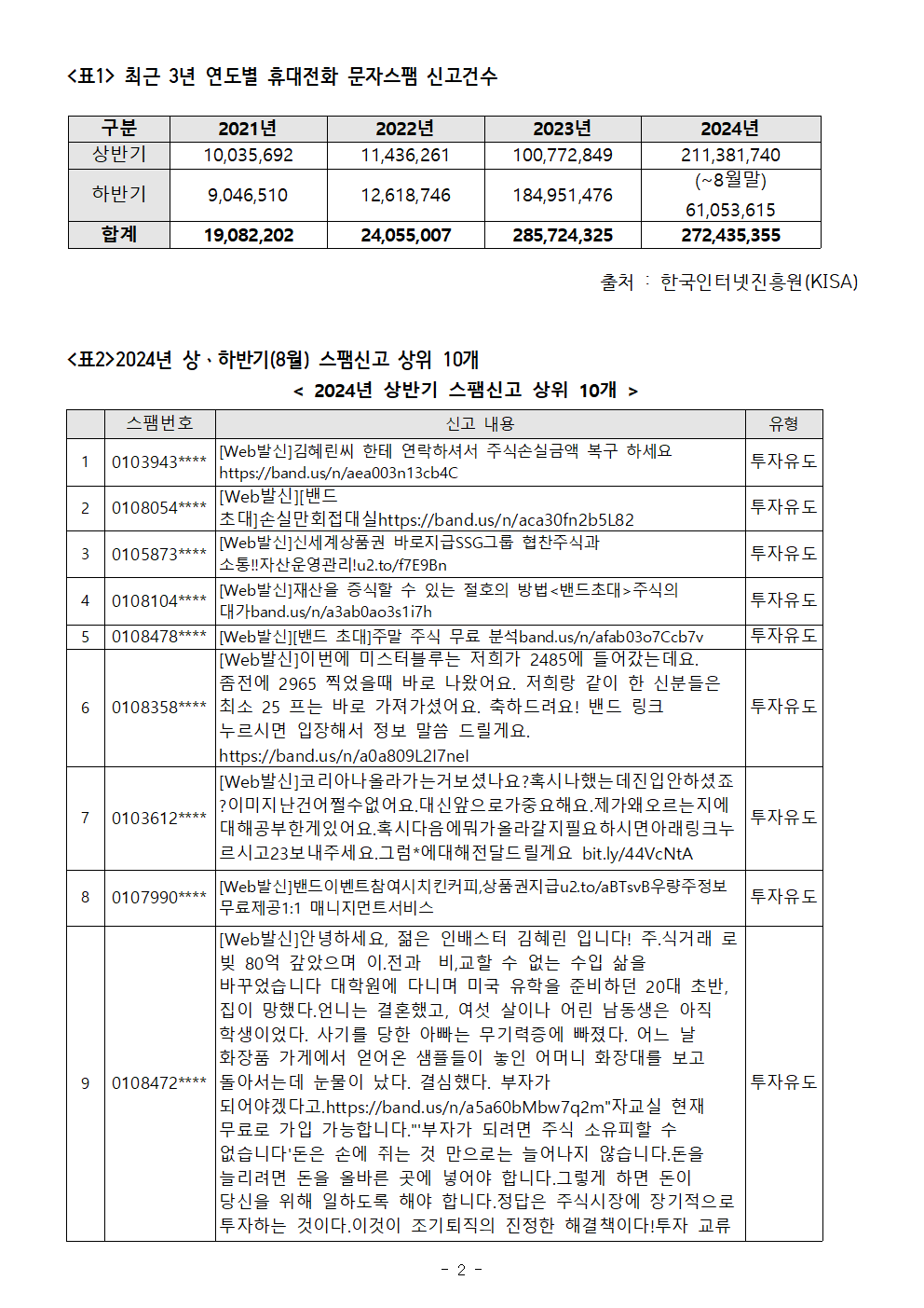 [국회의원 한민수] 방통위, 국민 220만명 괴롭힌 불법스팸문자 발신범에 과태료 부과도 못해