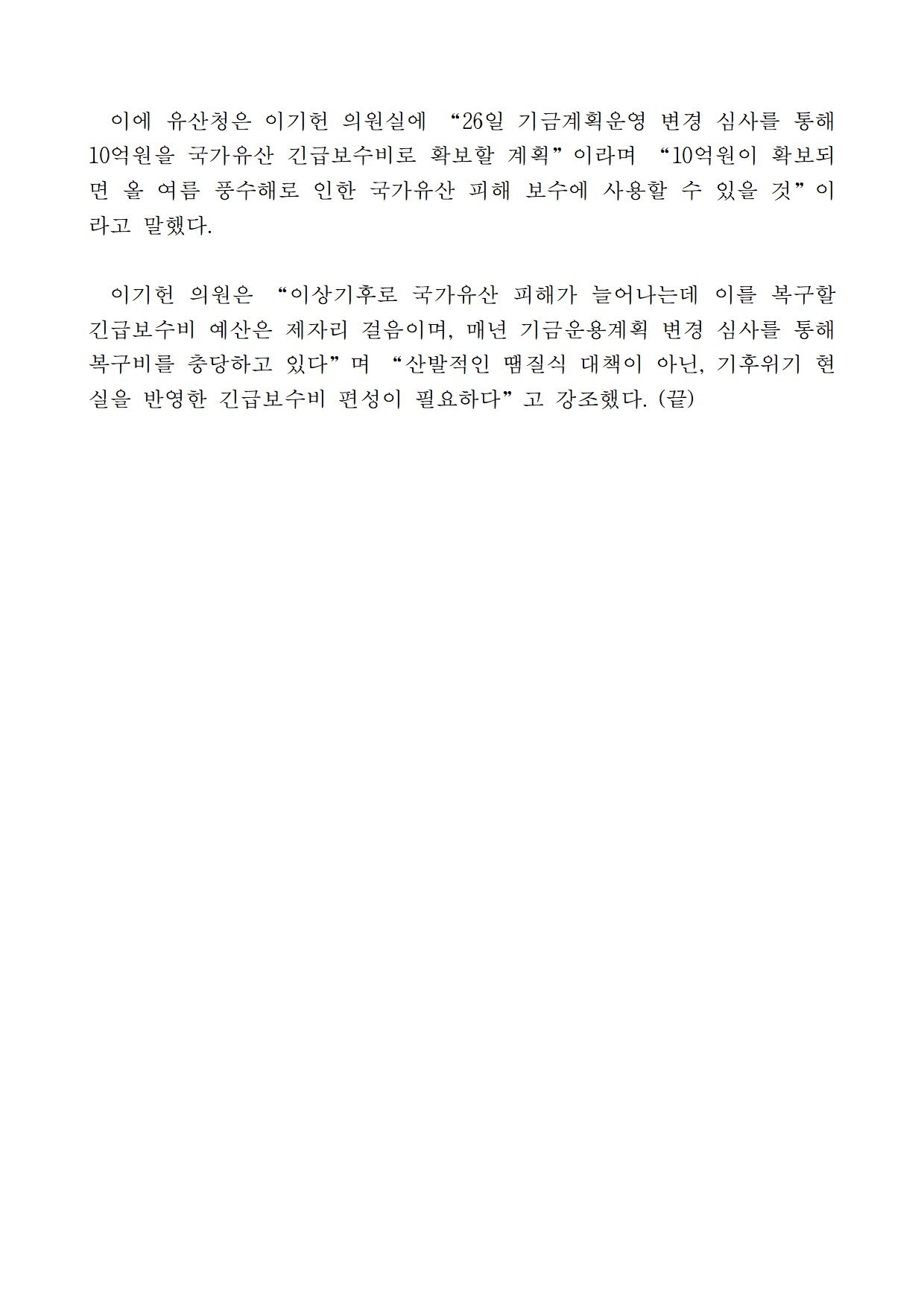 (최종)_이기헌의원실_국감보도자료_국가유산_긴급보수비_0원인데_가을폭우로_국가유산_2건_피해.hwp