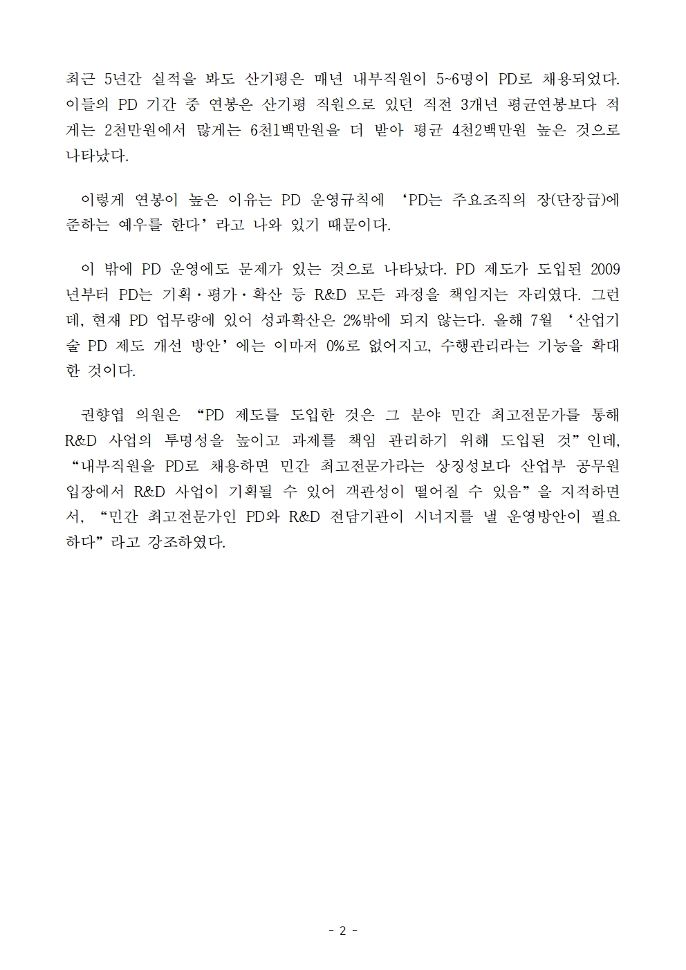 [국회의원 권향엽] 권향엽 “과도한 내부 직원의 PD 채용은 인건비 낭비”