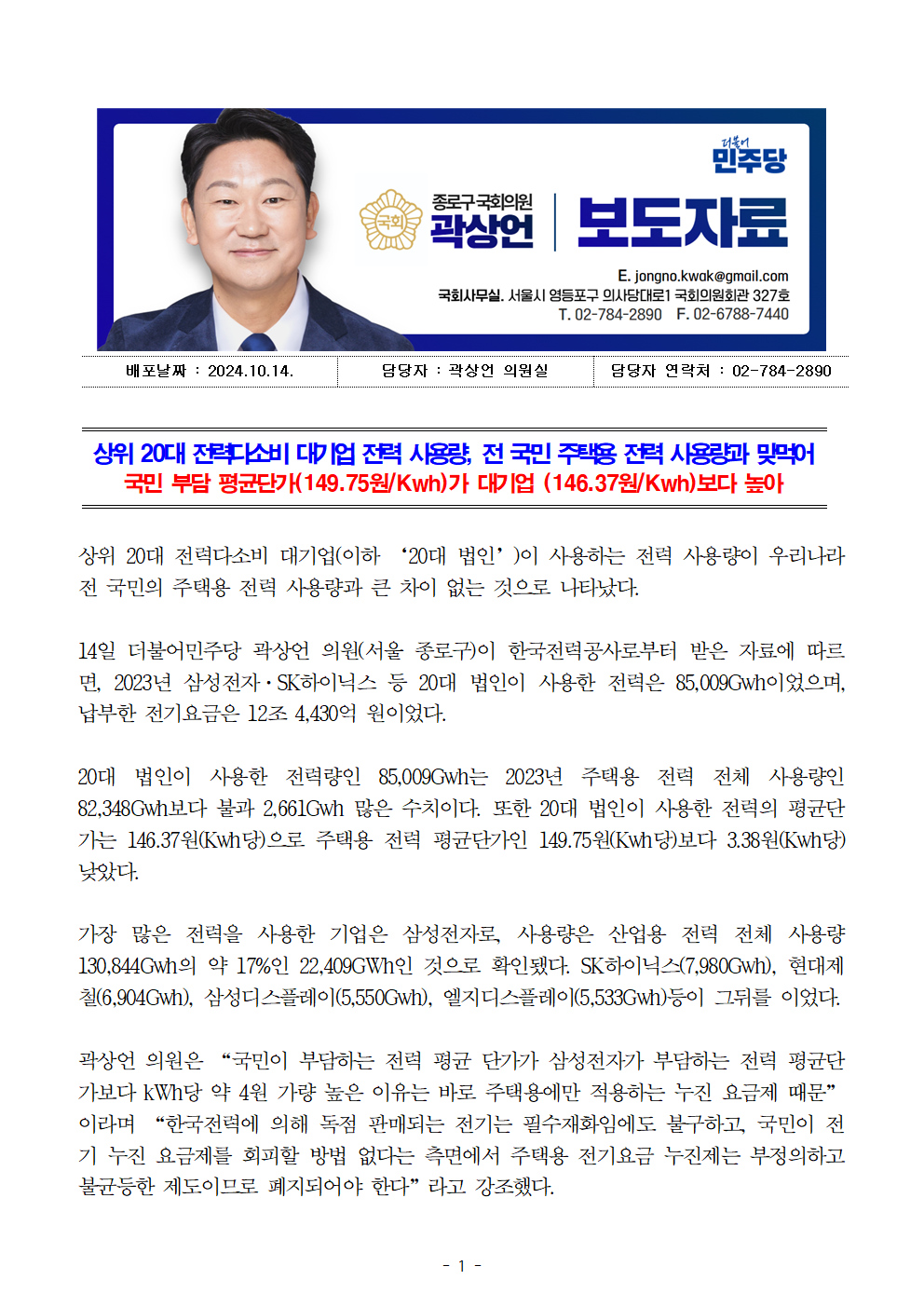 241015_곽상언의원 보도자료_상위 20대 전력다소비 대기업 전력 사용량 전 국민 주택용 전력 사용량과 맞먹어.pdf