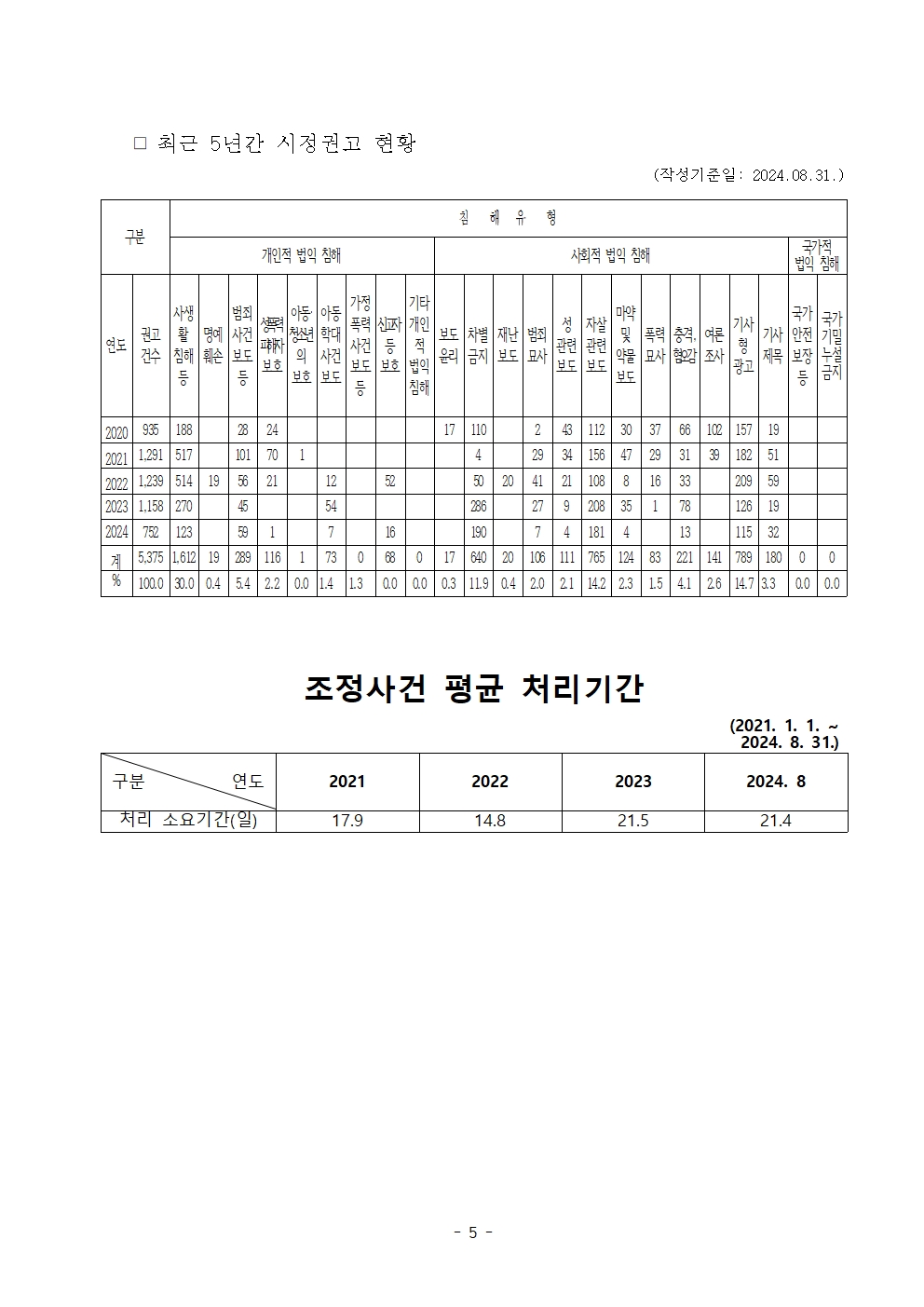 241015_[임오경 국회의원 보도자료] 최근 5년간 언론중재위 조정신청건수 1만8264건_최근 4년간 조정사건 평균 처리 기간은 18.9일.hwp