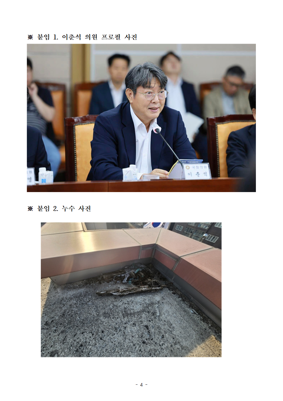 [이춘석 의원 국정감사 보도자료] 이춘석 의원, 최근 5년간 역사 누수 264.8% 폭증!