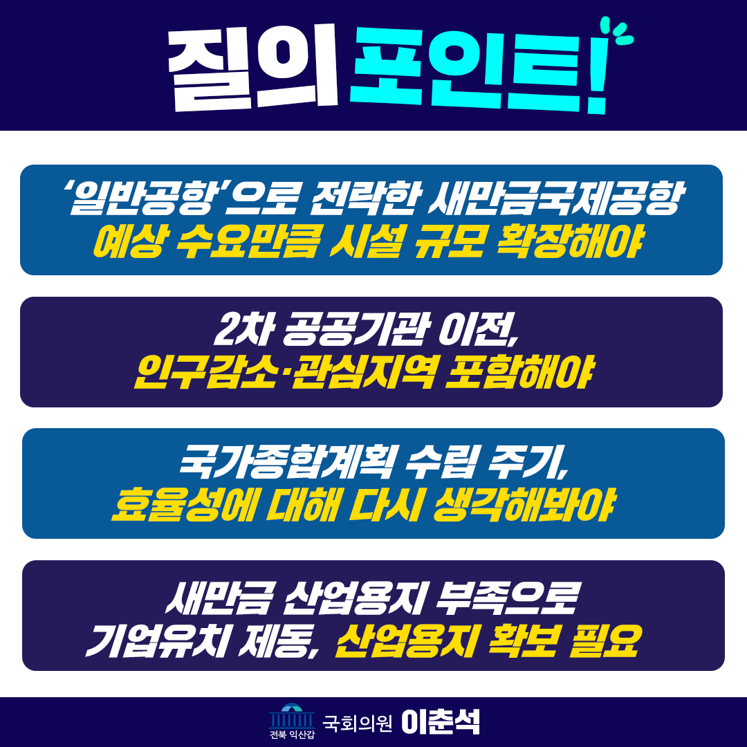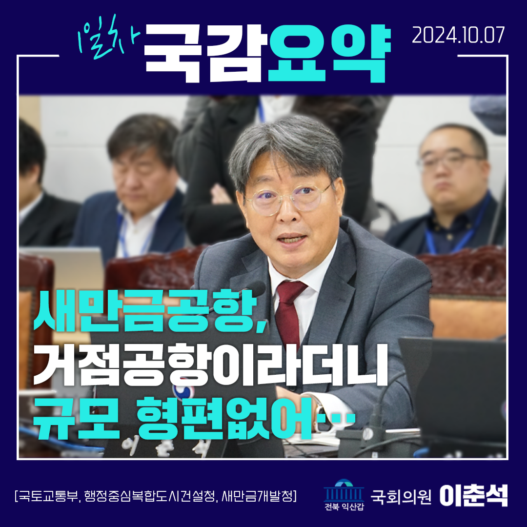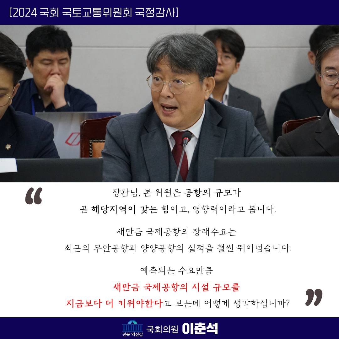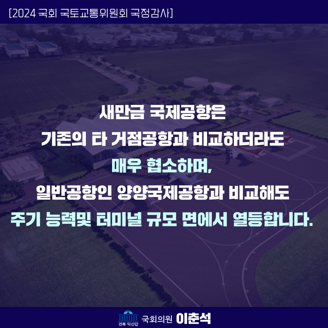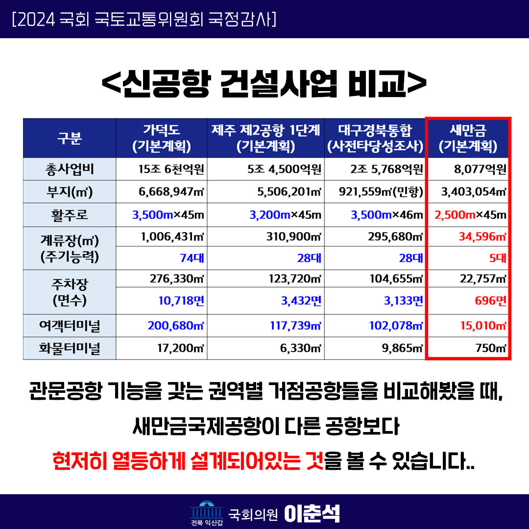 [이춘석 의원 국정감사 카드뉴스] 1일차, 새만금공항, 거점공항이라더니 규모 형편없어…