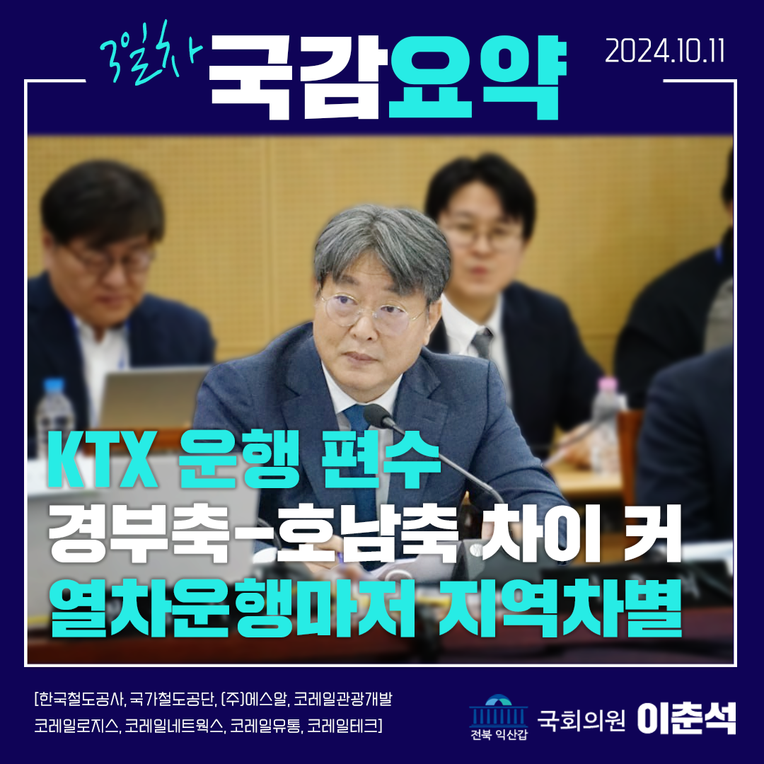 [이춘석 의원 국정감사 카드뉴스] KTX 운행 편수 경부축-호남축 차이 커, 열차 운행마저 지역 차별