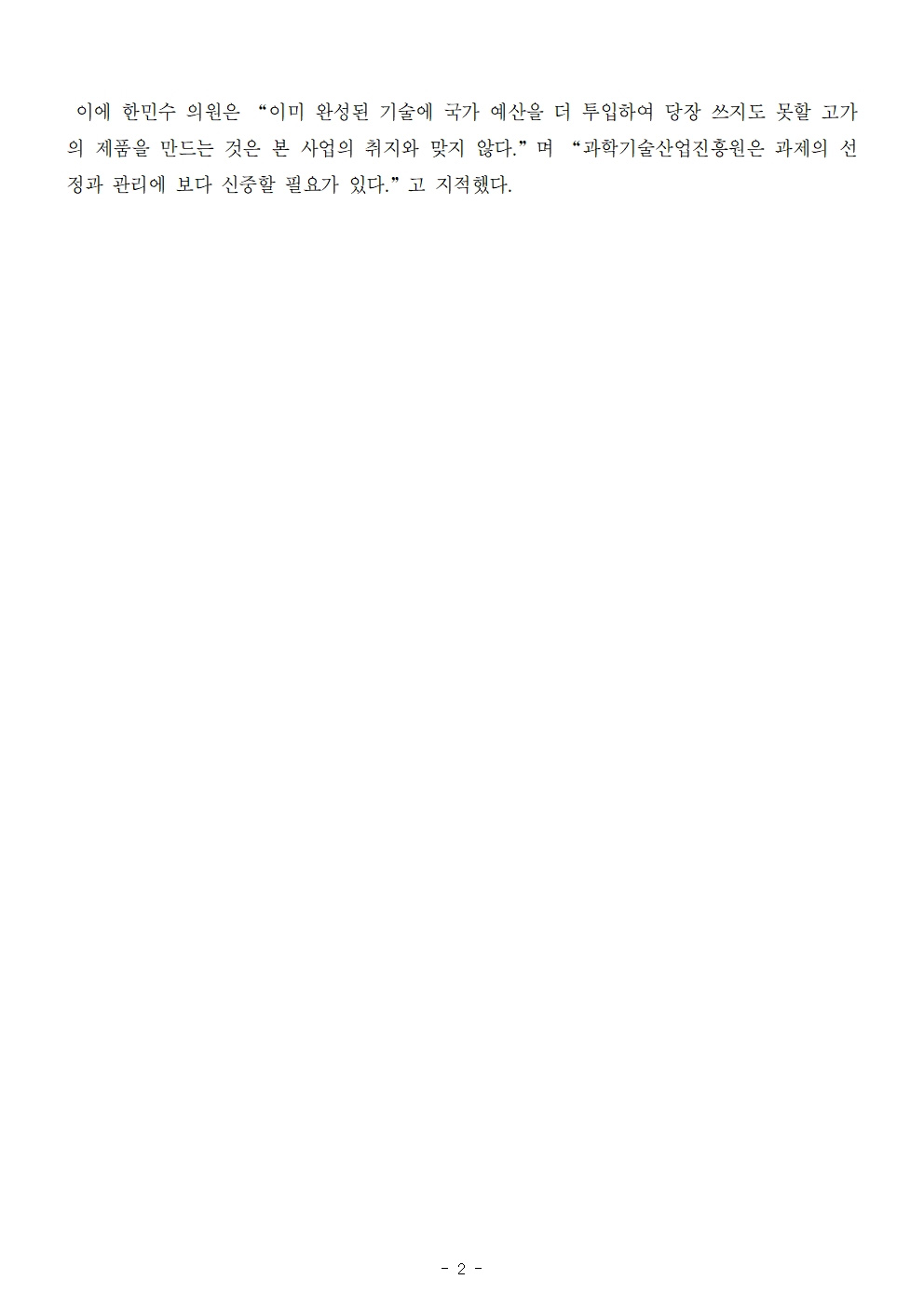 [국회의원 한민수] 이미 완성단계 기술에 11억 더 투자하고도 실용화 R&D 실패