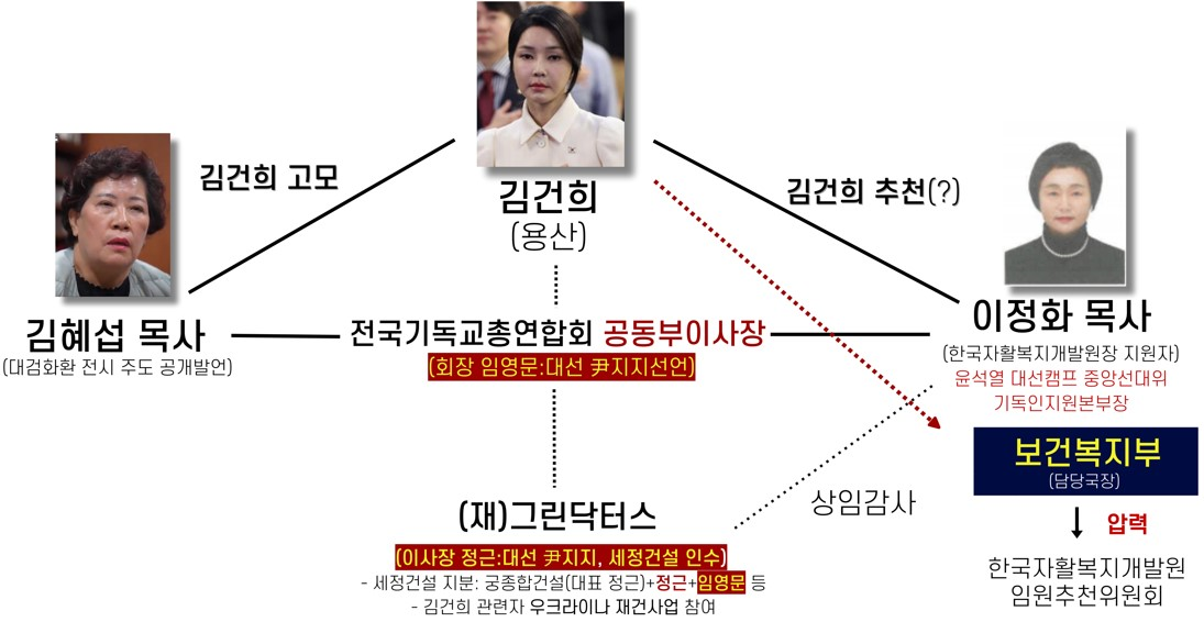 - 金 고모와 보수기독인단체 공동부이사장, 尹 대선캠프 본부장 지낸 이정화 목사 낙하산 임명 압박