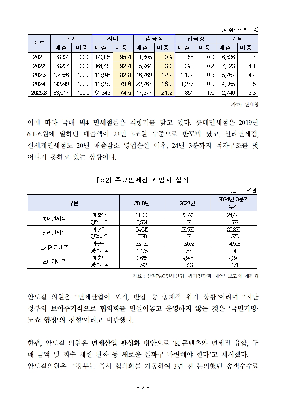 [국회의원 안도걸 보도자료] 면세산업 위기속…전 정부 ‘면세산업 발전 협의회’ 3년간 ‘실종’