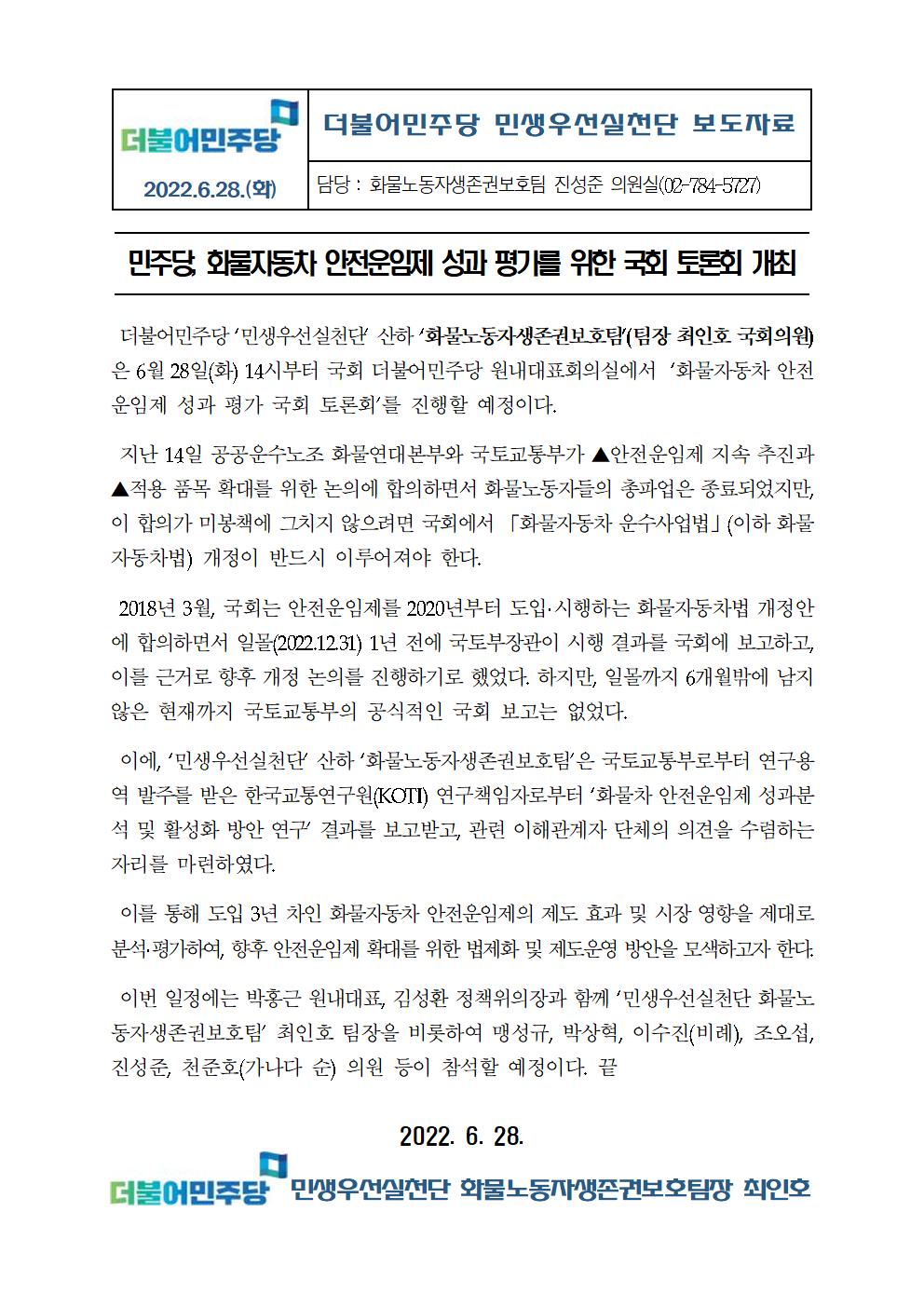 보도자료_220628_민주당,_화물자동차_안전운임제_성과_평가를_위한_국회_토론회_개최_수정.hwp