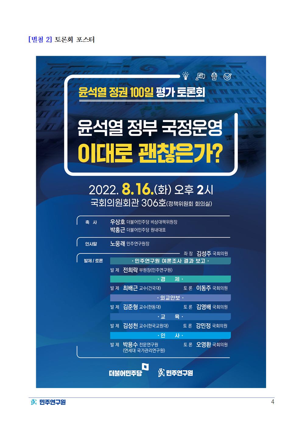 220816_보도자료_민주연구원,_윤석열_정권_100일_평가_토론회.pdf