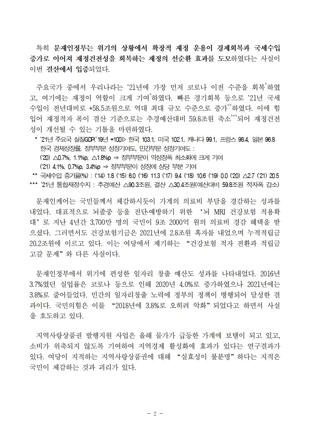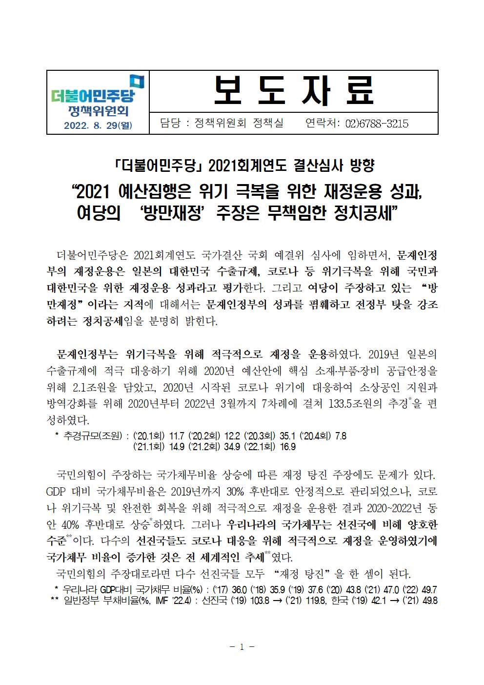 [보도자료] 더불어민주당 2021년 회계연도 결산심사 방향