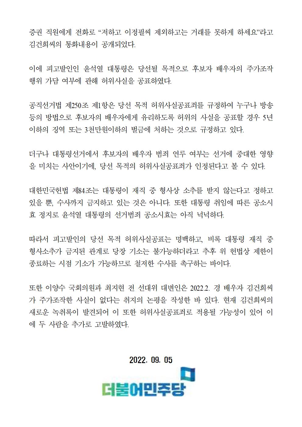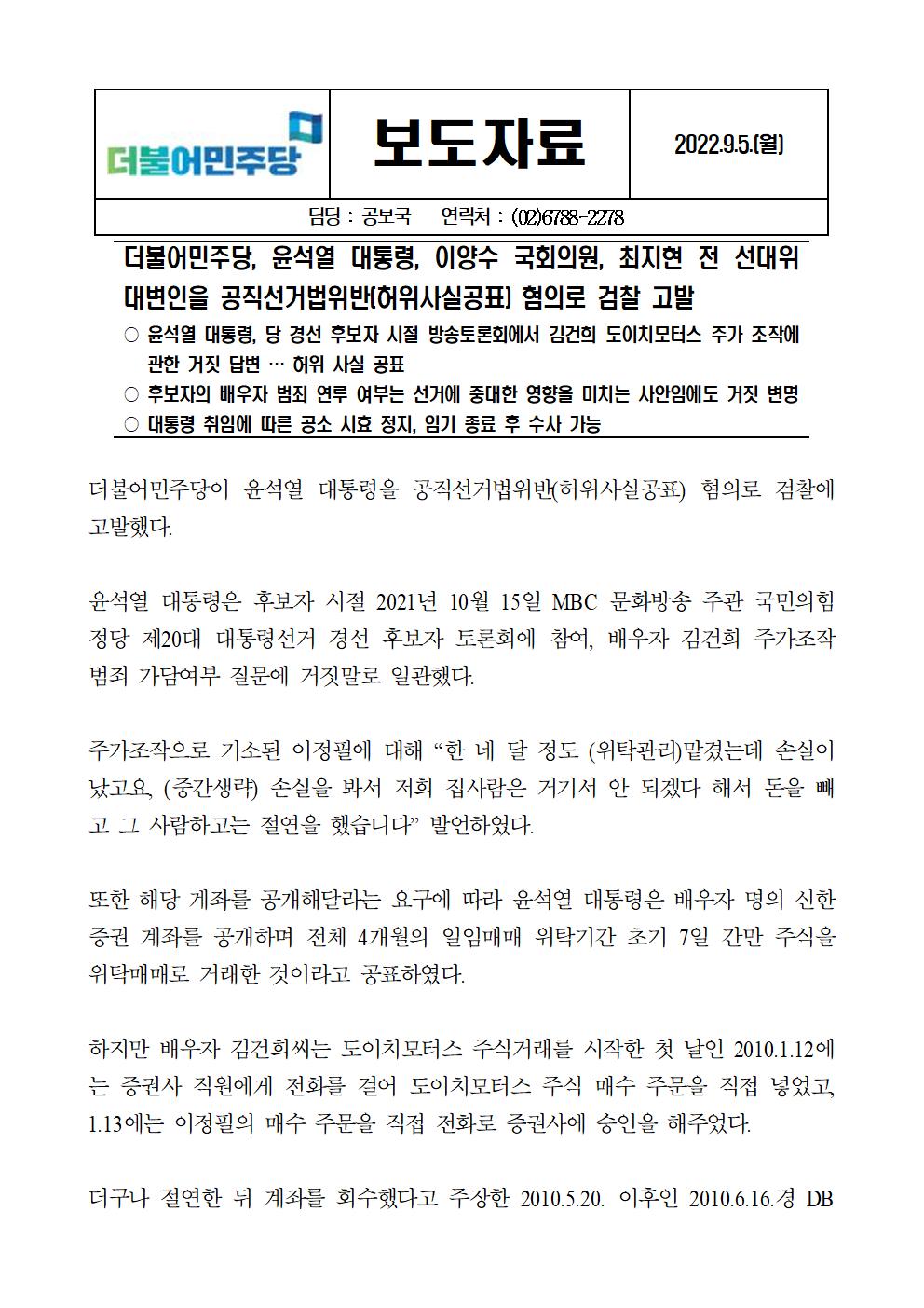 220905_보도자료_더불어민주당,_윤석열_대통령,_이양수_국회의원,_최지현_전_선대위_대변인을_공직선거법위반(허위사실공표)_혐의로_검찰_고발.pdf