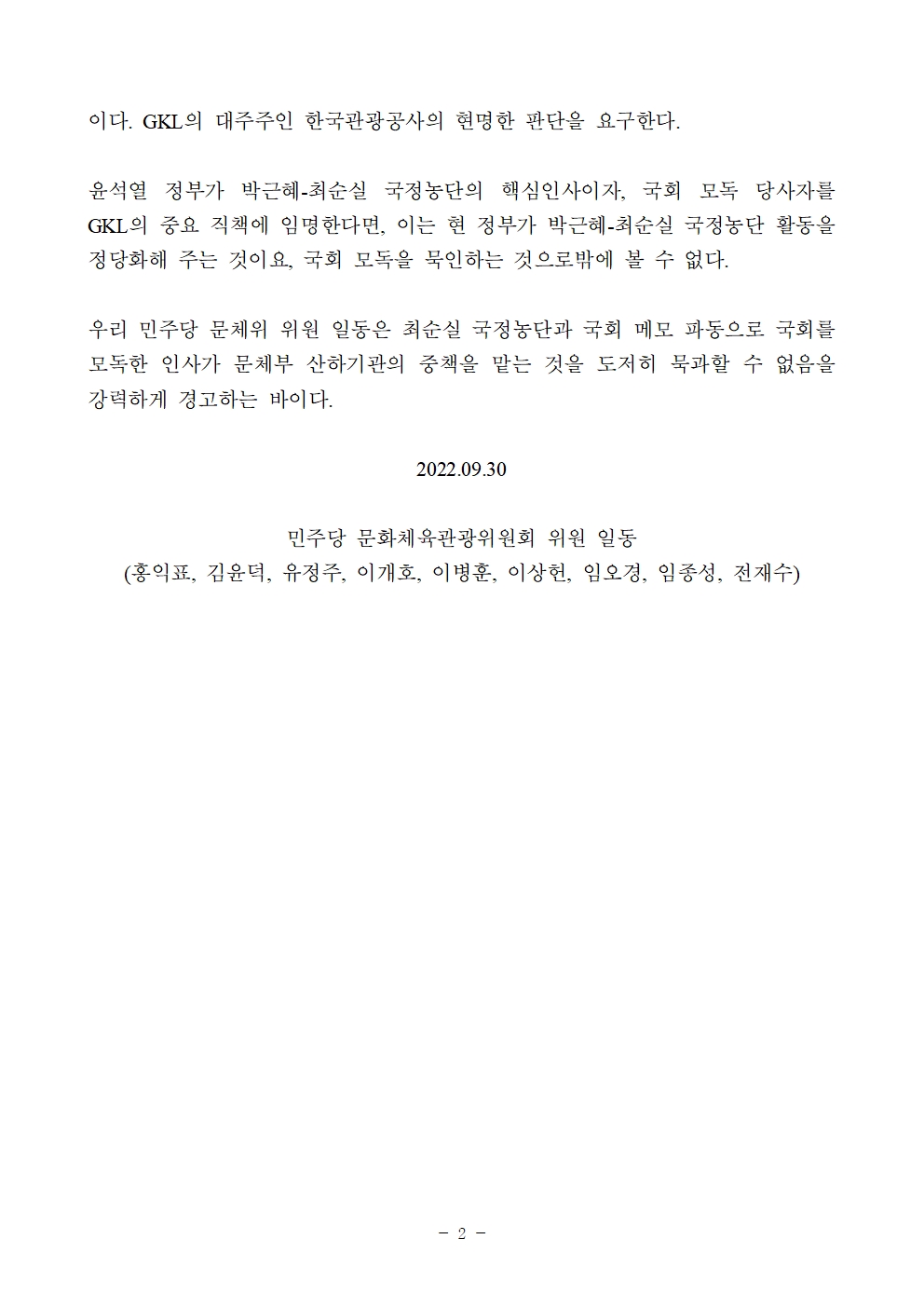 민주당_문체위_위원_성명서(국정농단_전_문체부_관계자_문체부_산하기관_GKL_임원_내정_관련)220929.pdf