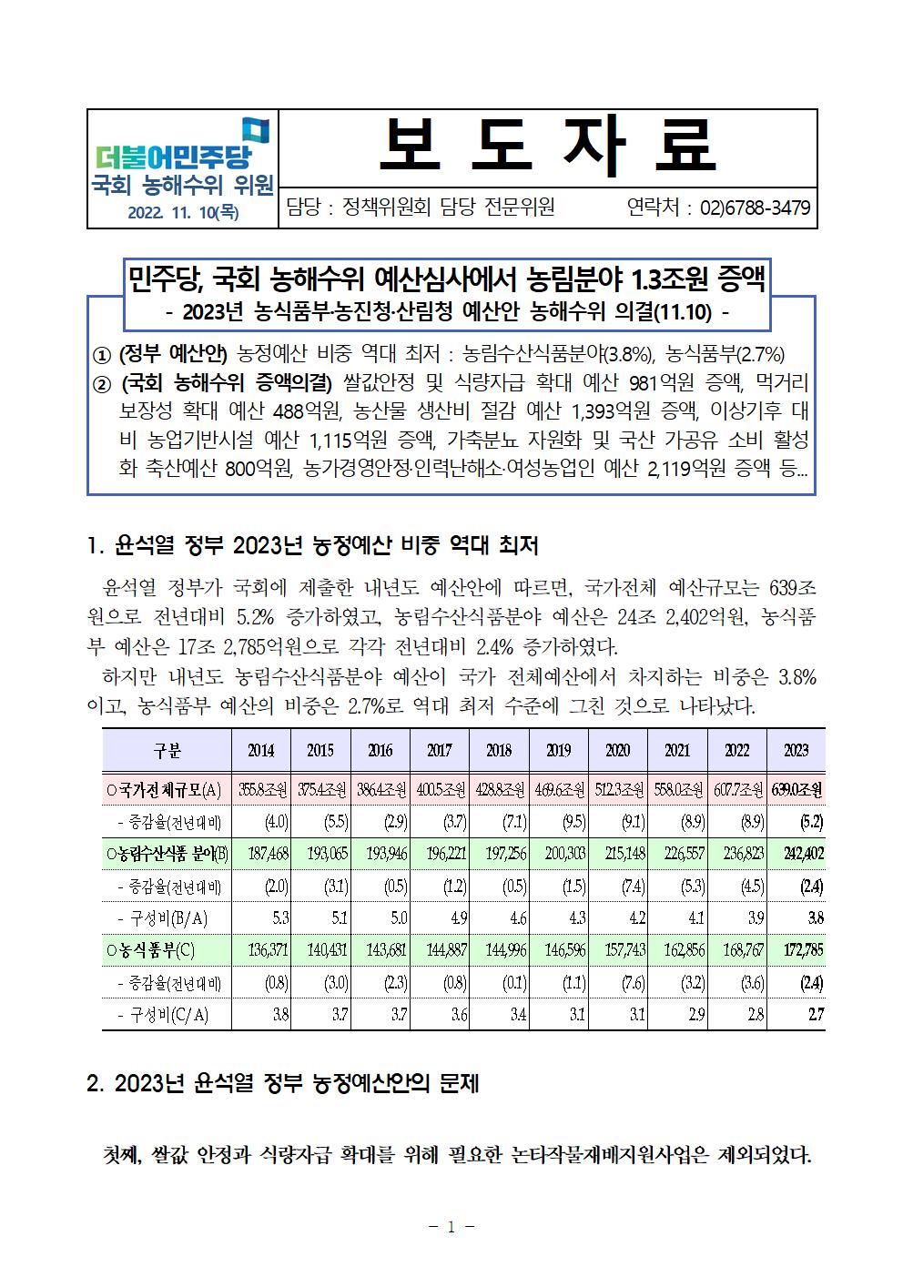 221110_(보도자료)_민주당_23년_농림분야_정부예산1조증액.pdf