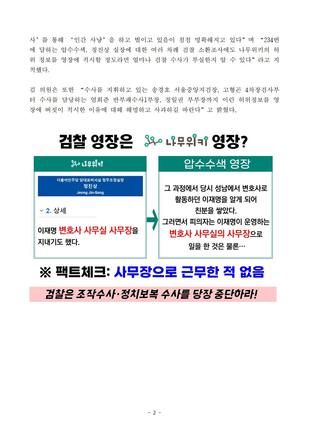 [보도자료] 더불어민주당 검찰독재정치탄압대책위원회, '나무위키' 받아쓴 검찰의 엉터리 압수수색 영장