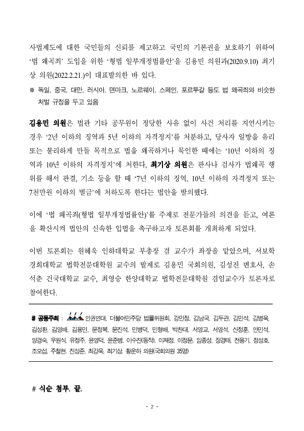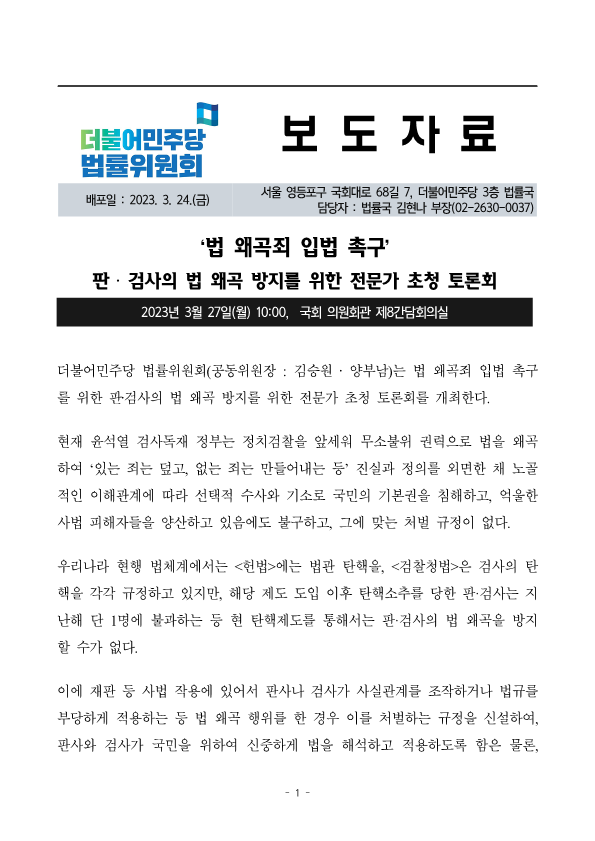 230324_보도자료(사전)_민주당_법률위원회_법왜곡죄_토론회.pdf