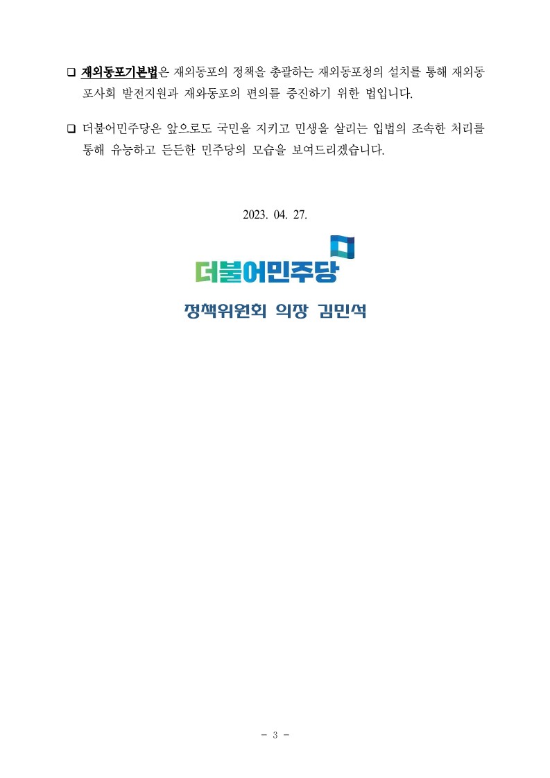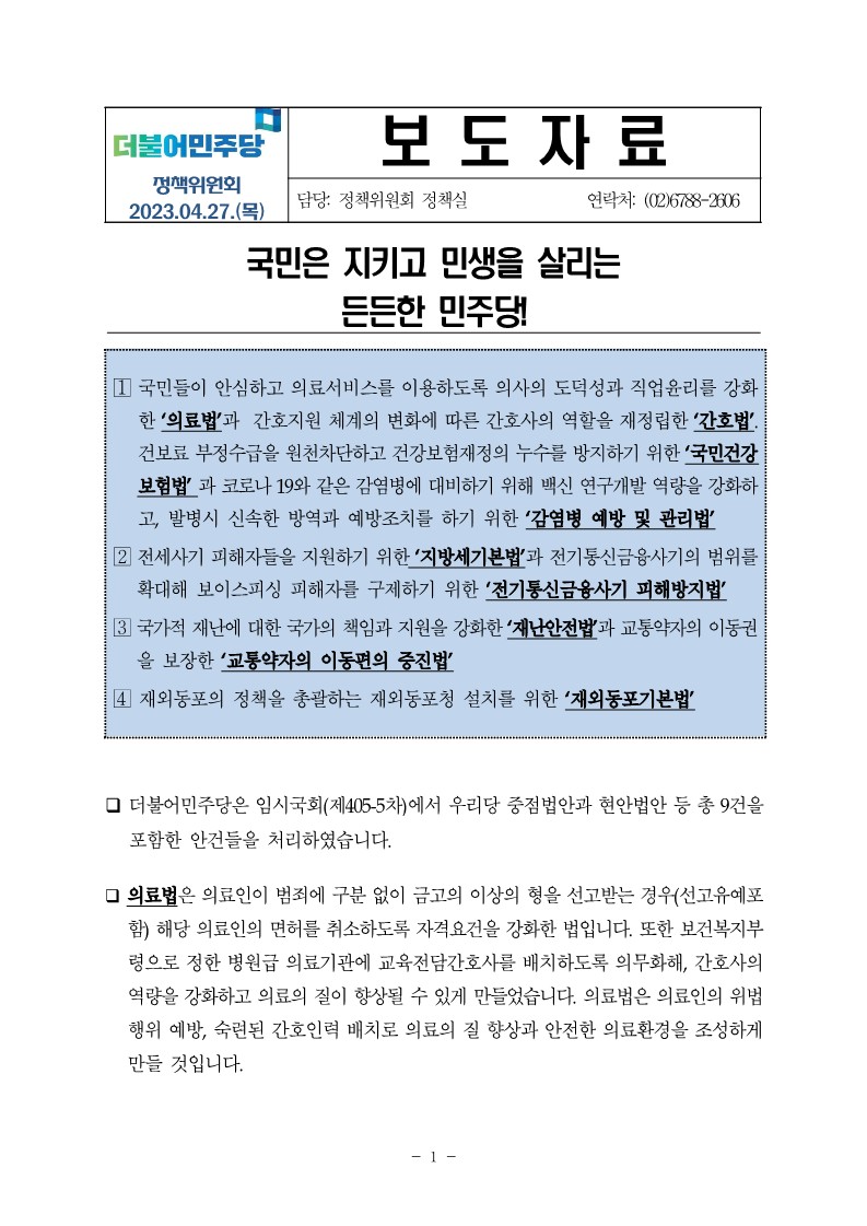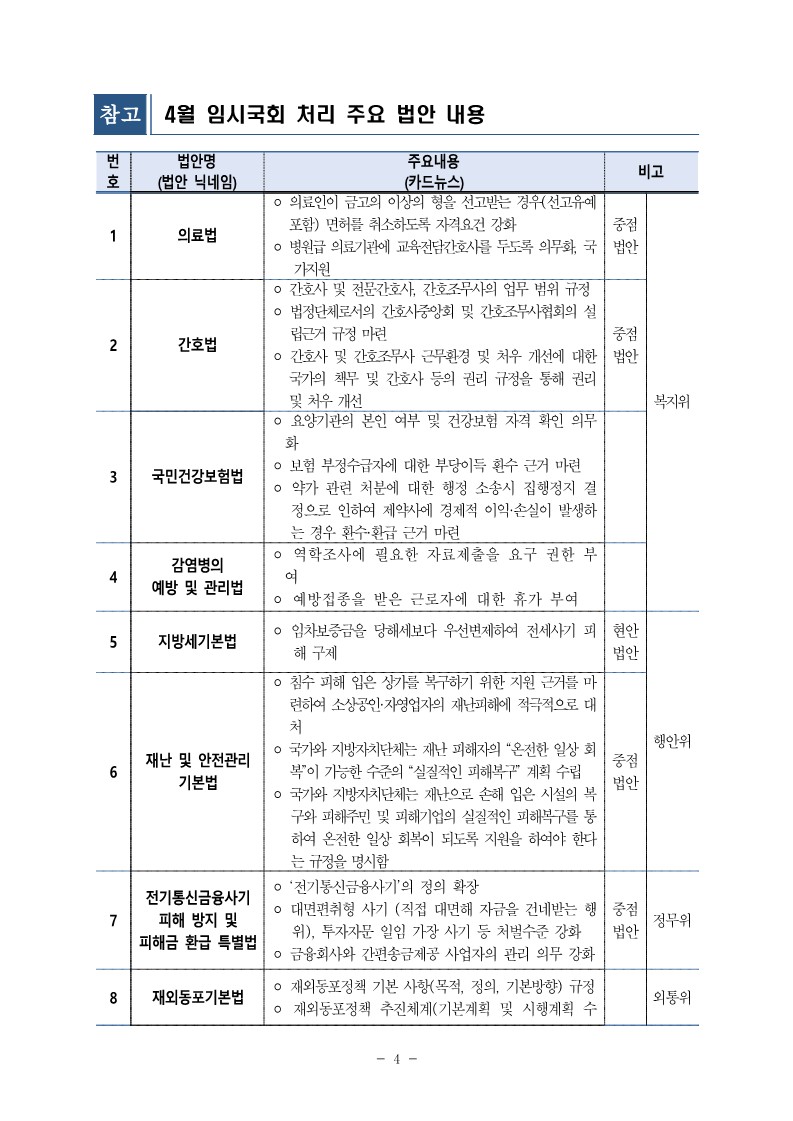 [보도자료] 더불어민주당 정책위원회 4월 임시국회 입법성과