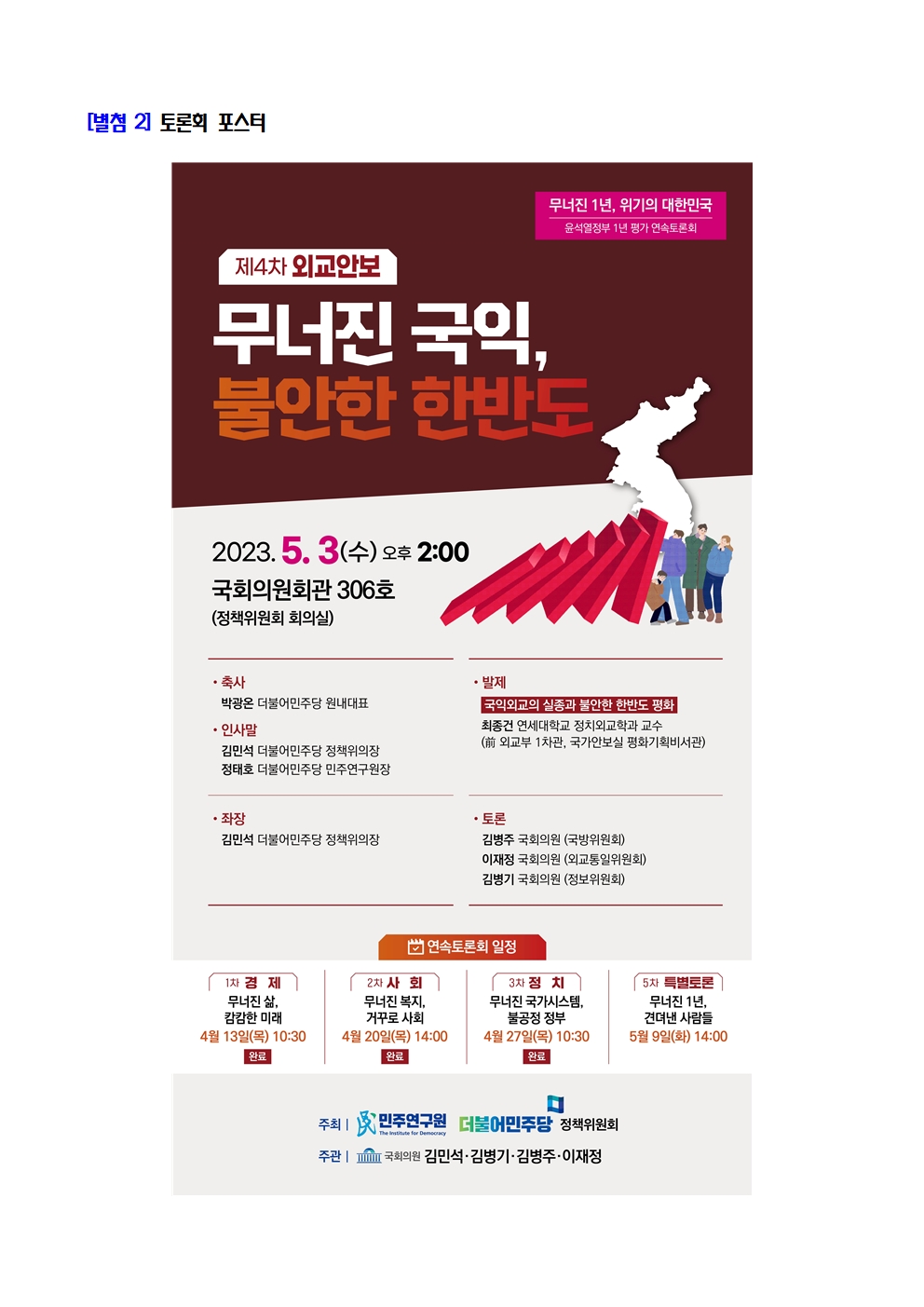 [보도자료] 더불어민주당 민주연구원, 윤석열정부 1년 ‘외교안보’ 평가 토론회 개최 - 무너진 국익, 불안한 한반도 -