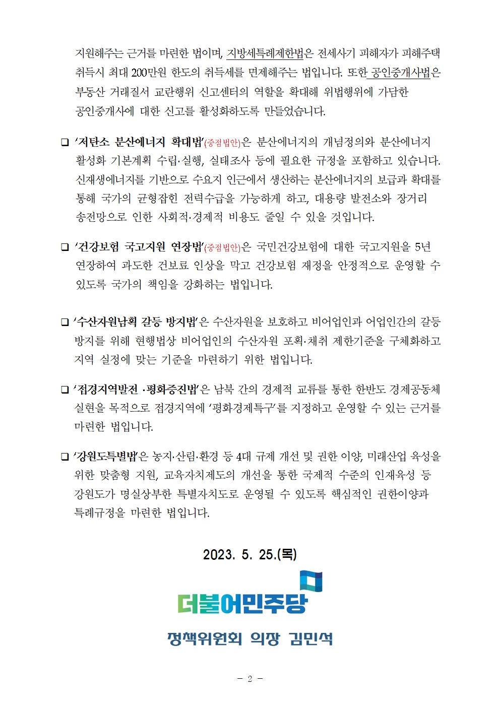 [보도자료] 더불어민주당 정책위원회 5월 임시국회 입법성과
