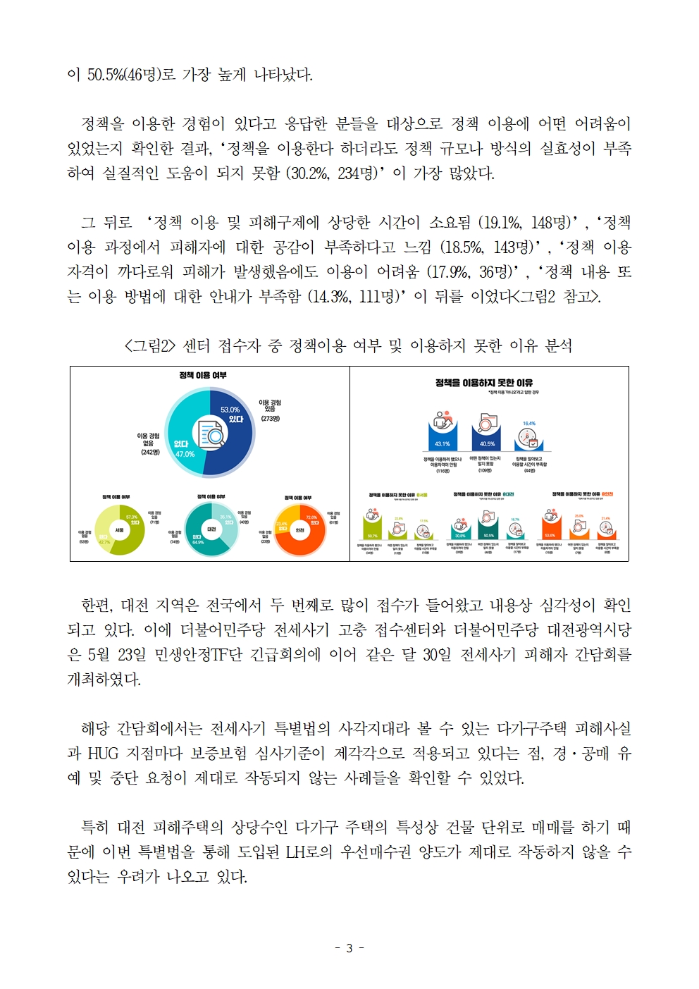 [보도자료] 더불어민주당 을지키는민생실천위원회ㆍ전세사기 피해고충 온라인접수센터, 정례 브리핑 2회차 보고서 발간