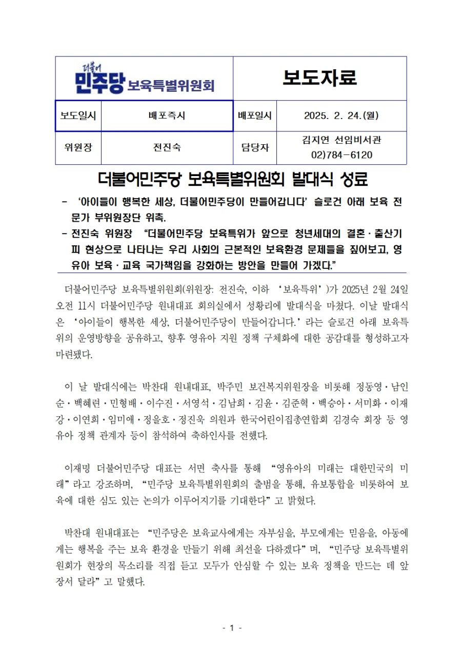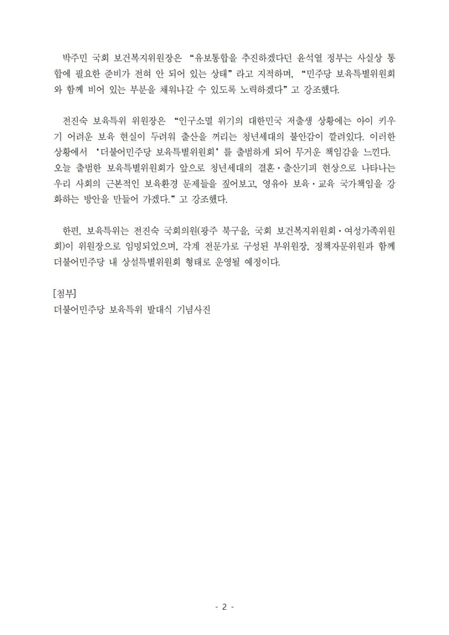더불어민주당 보육특별위원회, 발대식 개최