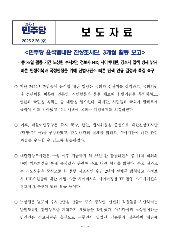 더불어민주당 윤석열내란 진상조사단, 3개월 활동 보고