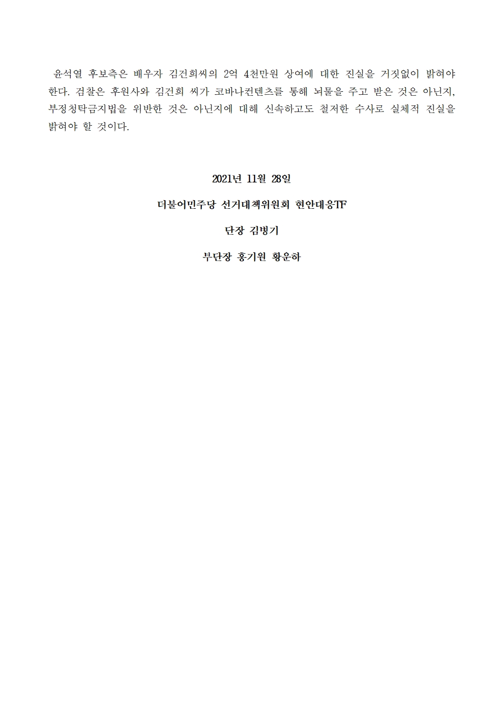 [보도자료] 윤석열 중앙지검장 취임 후 김건희 씨 급여 열 배 이상 늘어