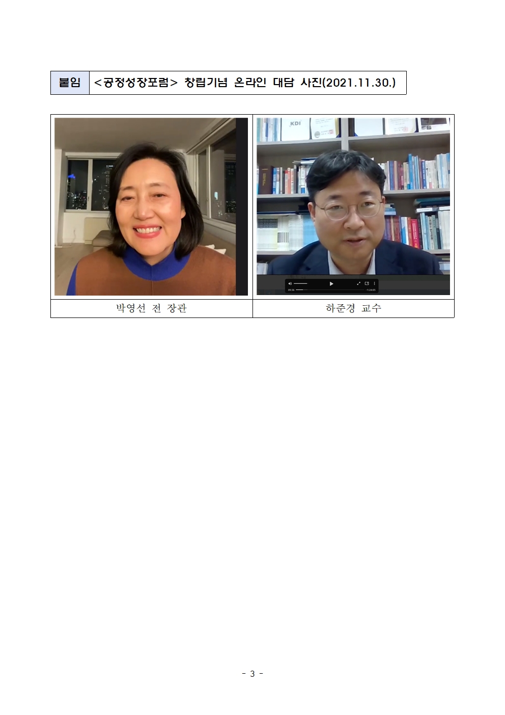 [보도자료] 하준경·박영선, 공정성장 포럼 창립기념 온라인 대담 진행