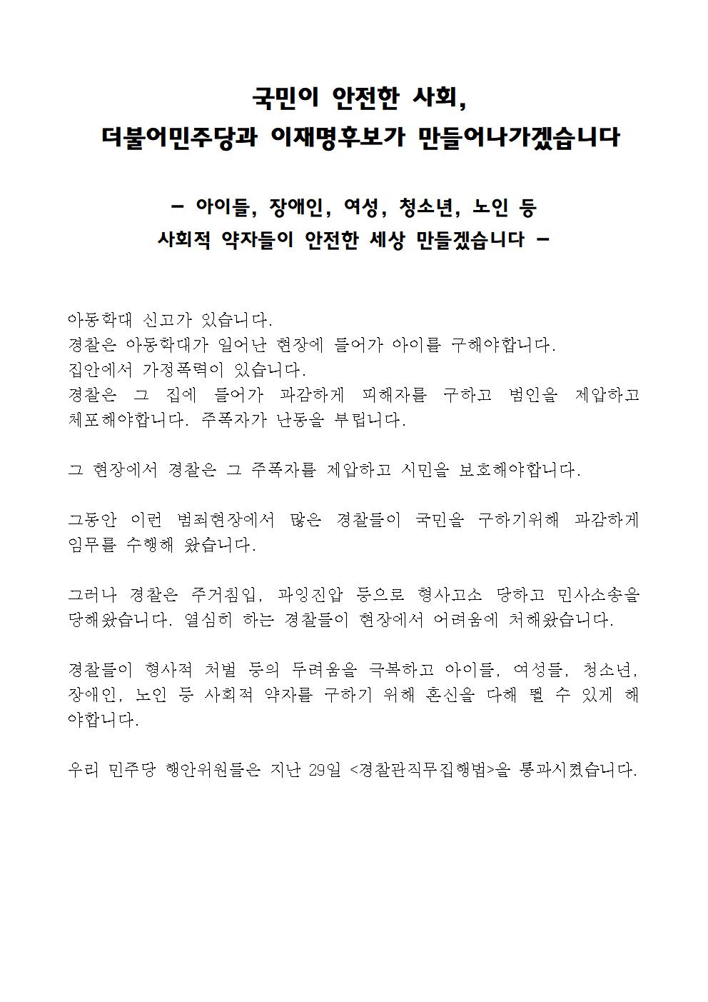 [기자회견문] 더불어민주당 행정안전위원, 경찰관직무집행법 통과 기자회견