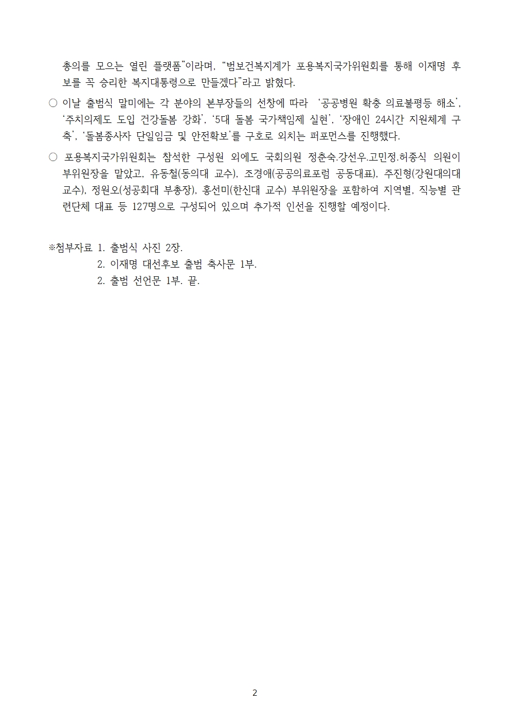 [보도자료] 이재명은 합니다 '제20대 대선후보특보단' 출범