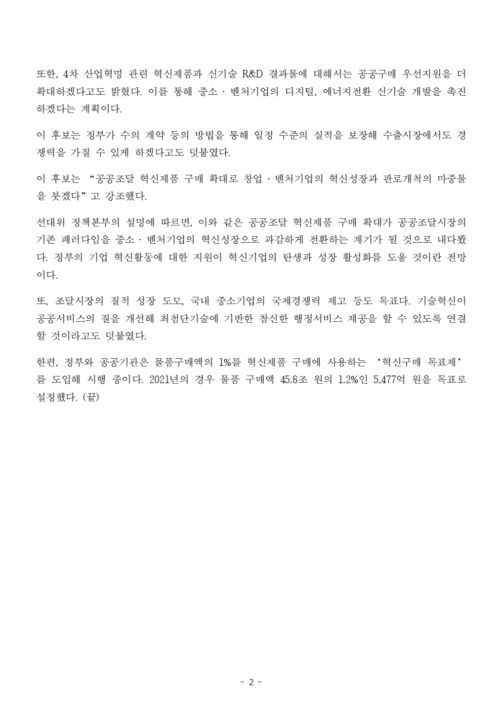 [보도자료] 더불어민주당 선대위 정책본부, '이재명의 합니다. 소확행 공약 시리즈 28' 중소기업 혁신제품 공공구매 확대 공약