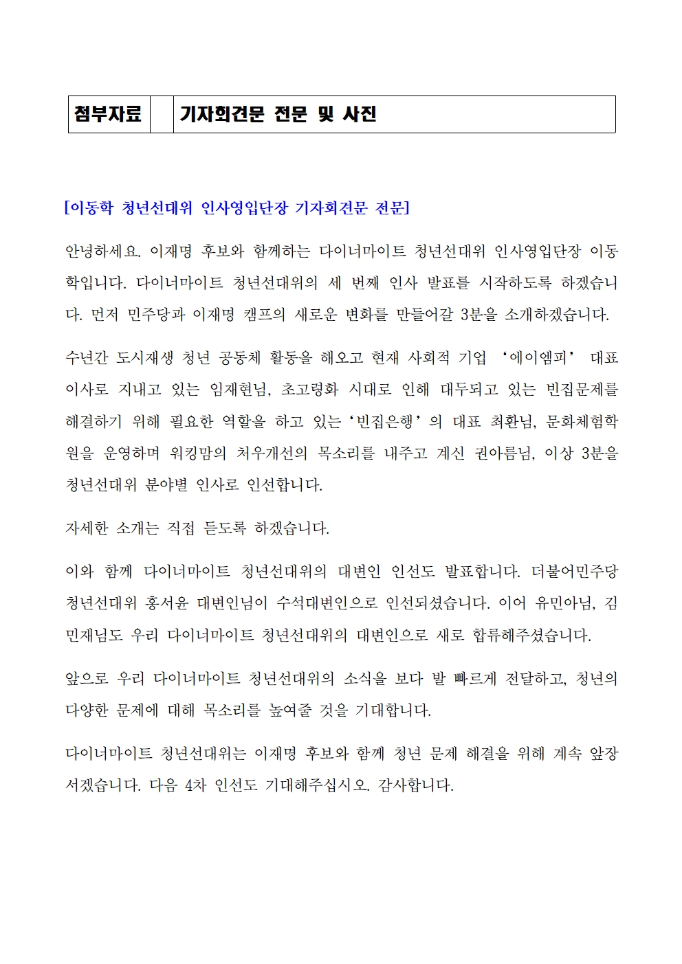 [보도자료]더불어민주당 다이너마이트 청년선대위 3차 인선발표