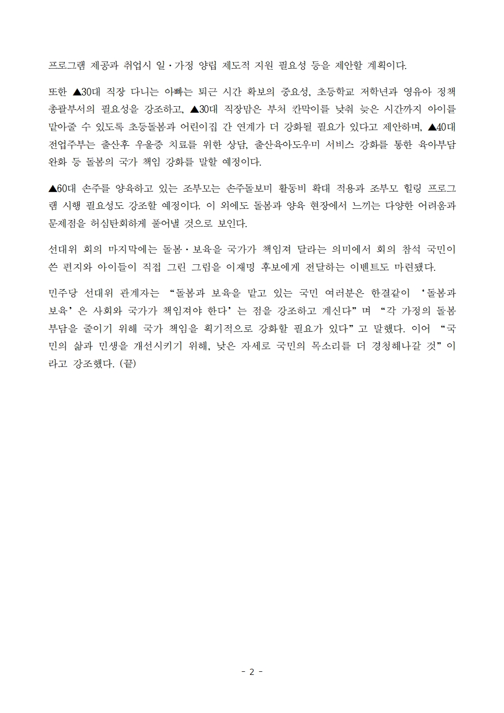 [보도자료] 더불어민주당 선대위 전략기획본부, ‘국가가 함께 키우겠습니다’ 전국민 선대위 개최