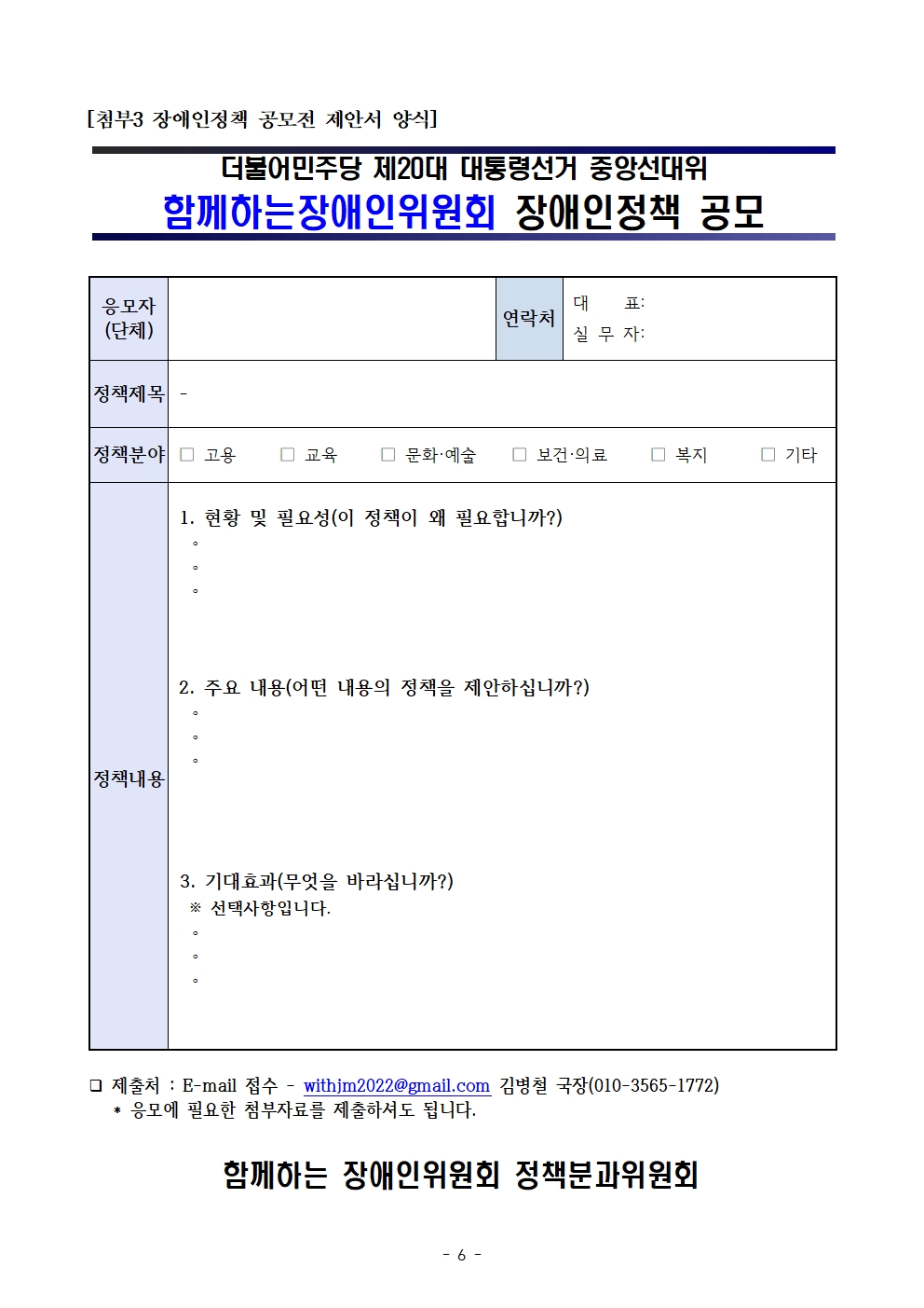 [보도자료] 더불어민주당 함께하는장애인위원회, '장애인정책 공모전' 개최