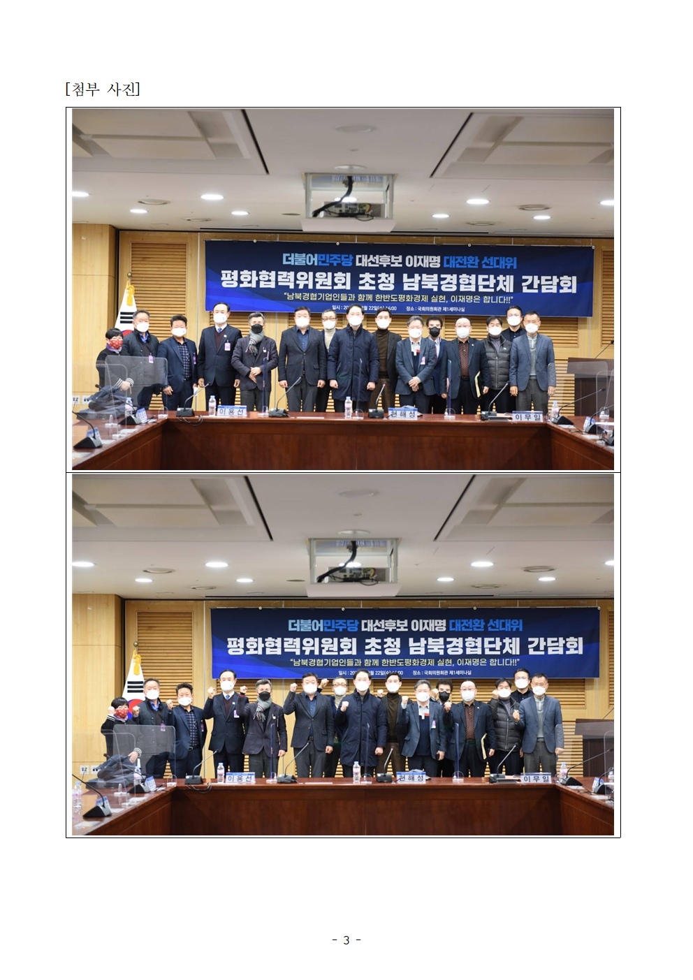 [보도자료] 더불어민주당 선대위 평화번영위원회 산하 평화협력위원회, 남북경협단체 간담회 개최