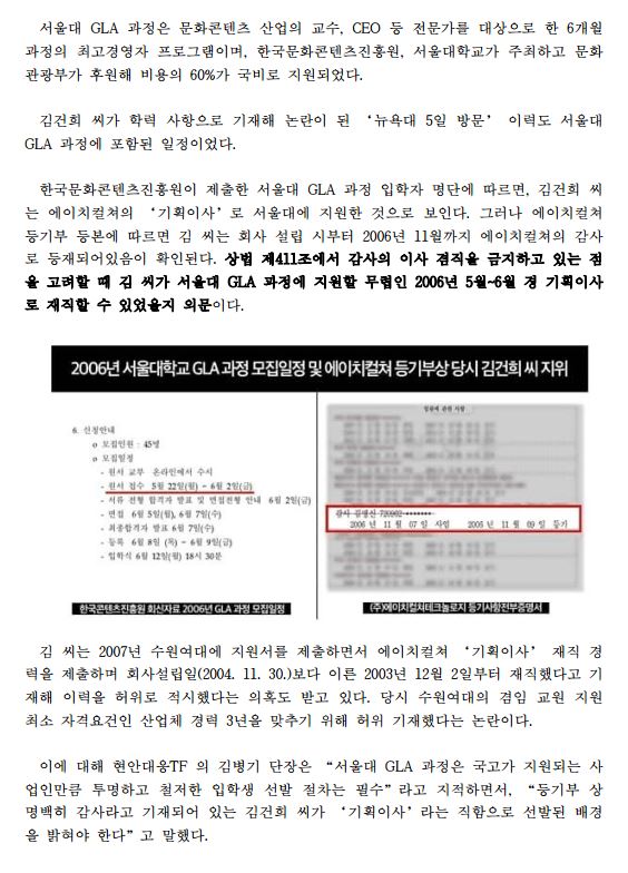 [보도자료] 김건희 씨, 국고 지원 서울대 GLA과정 지원당시 자격 의혹