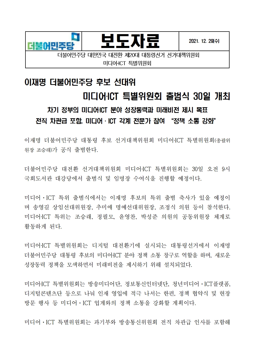 211229_더불어민주당선대위_미디어ICT특별위원회_보도자료_미디어ICT특위_출범식_30일_개최.pdf