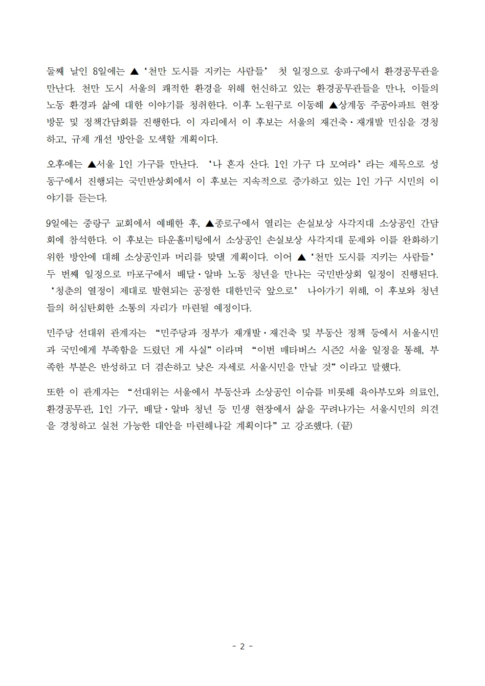 [보도자료] 더불어민주당 선대위 비서실, 이재명 후보, 매타버스 시즌2 '걸어서 민심 속으로' 서울 민심 경청 일정 돌입