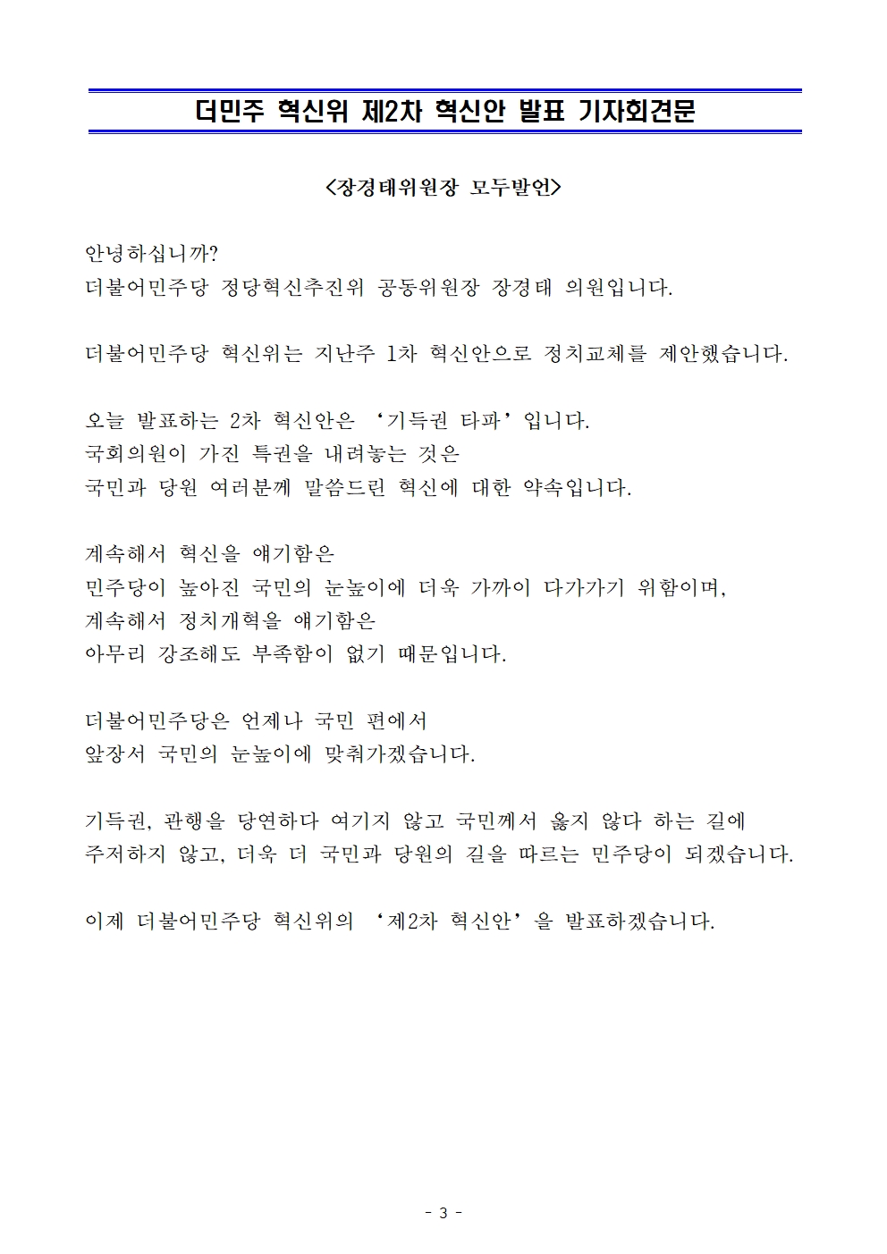 [보도자료] 더불어민주당 선대위 정당혁신추진위원회, 제2차 혁신안 발표