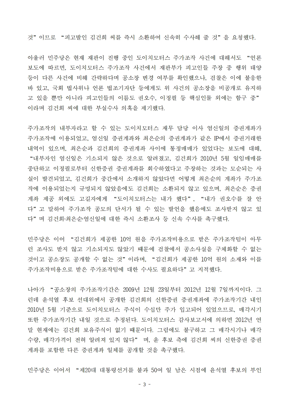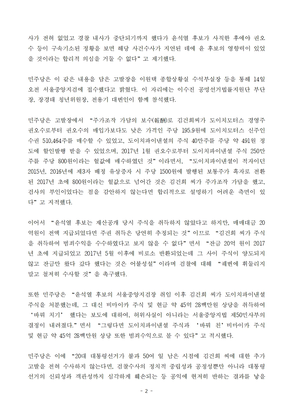 [보도자료] 더불어민주당 선대위 국민검증법률지원단, 더불어민주당, 김건희 씨 범죄수익은닉규제법 위반 혐의 추가 고발