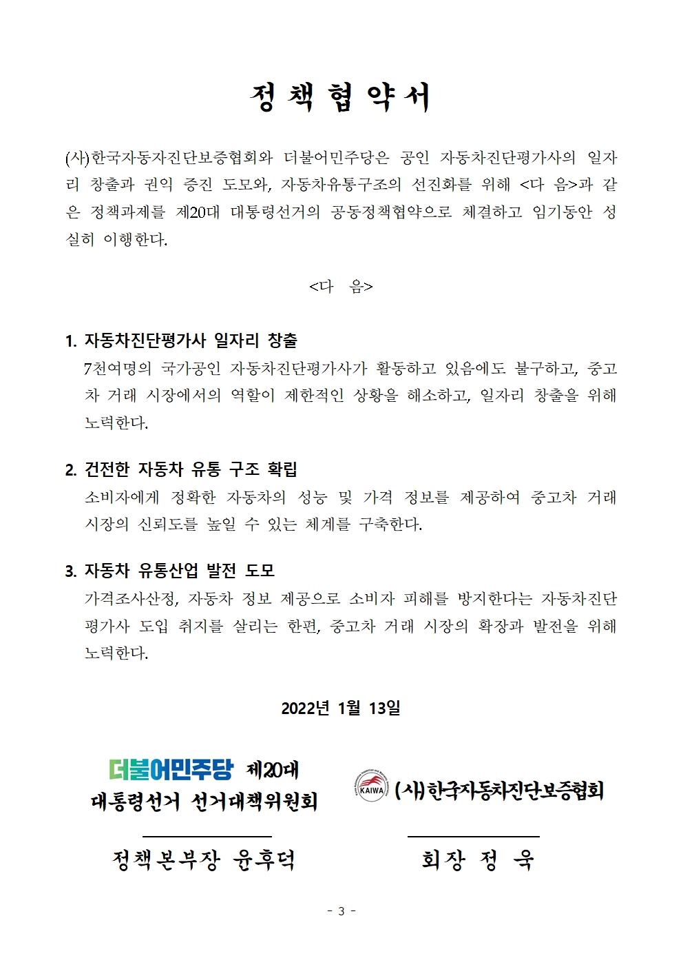 [보도자료] 더불어민주당 선대위 직능본부, 대전 및 자동차진단, 소방시설관리 직능단체 지지선언