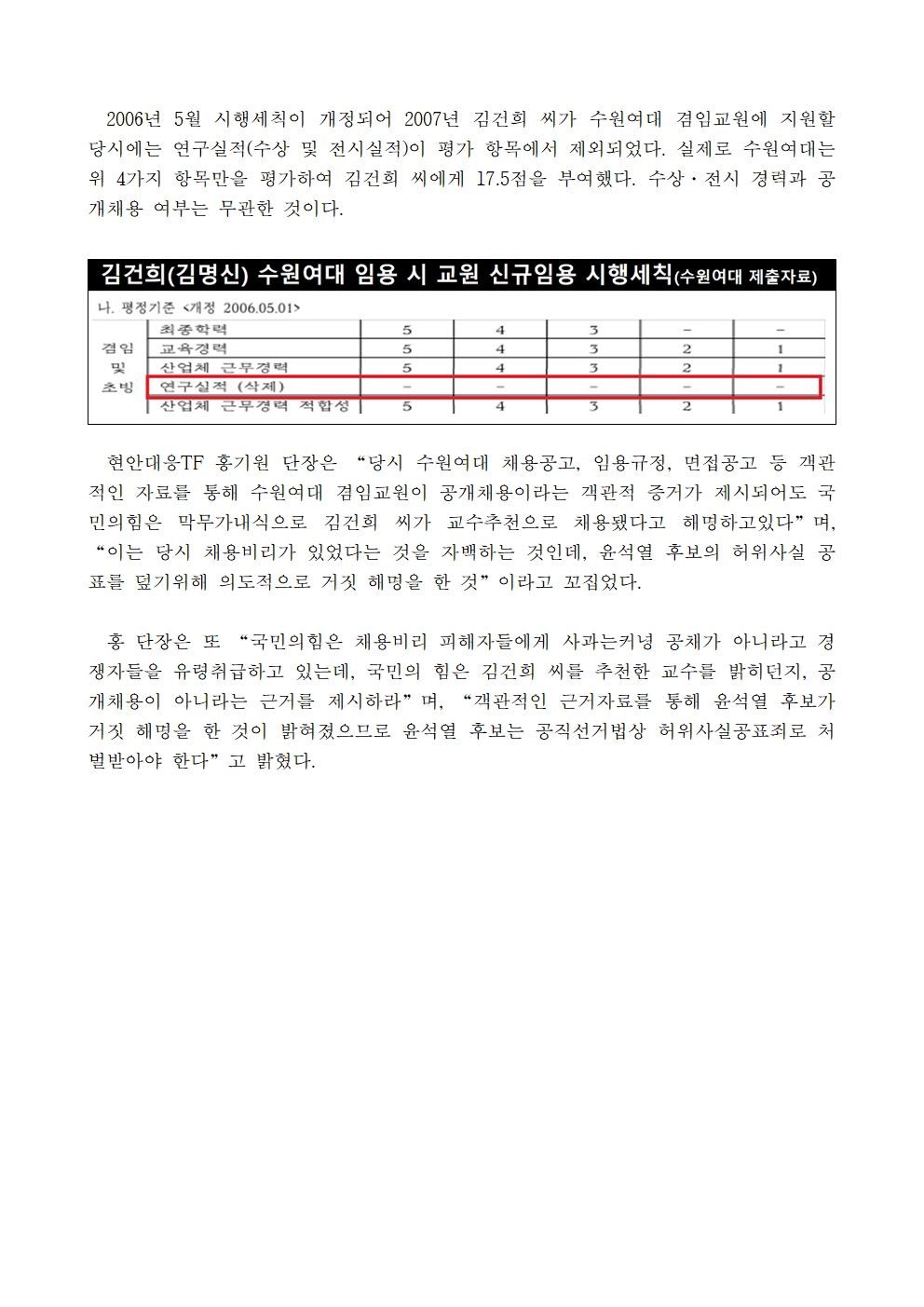 [보도자료] 더불어민주당 선대위 현안대응TF, 김건희 씨 수원여대 서류접수번호, 면접장소 및 시간 공개