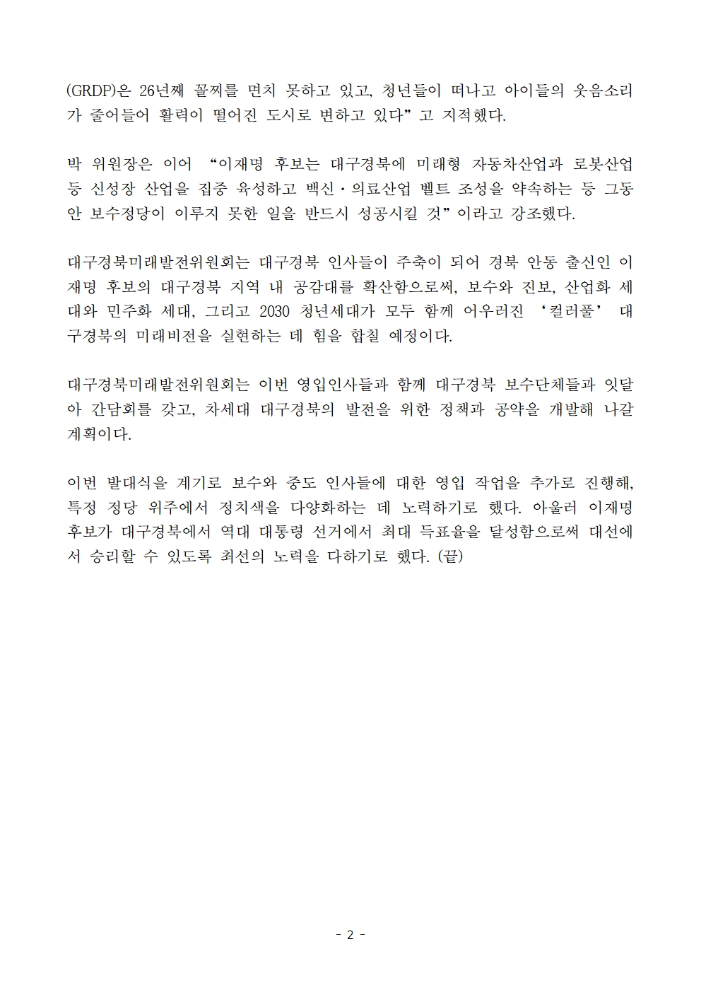 [보도자료] 더불어민주당 선대위 대구경북미래발전위원회 출범