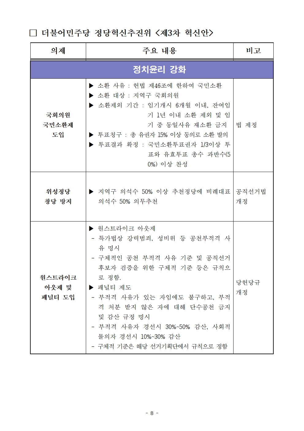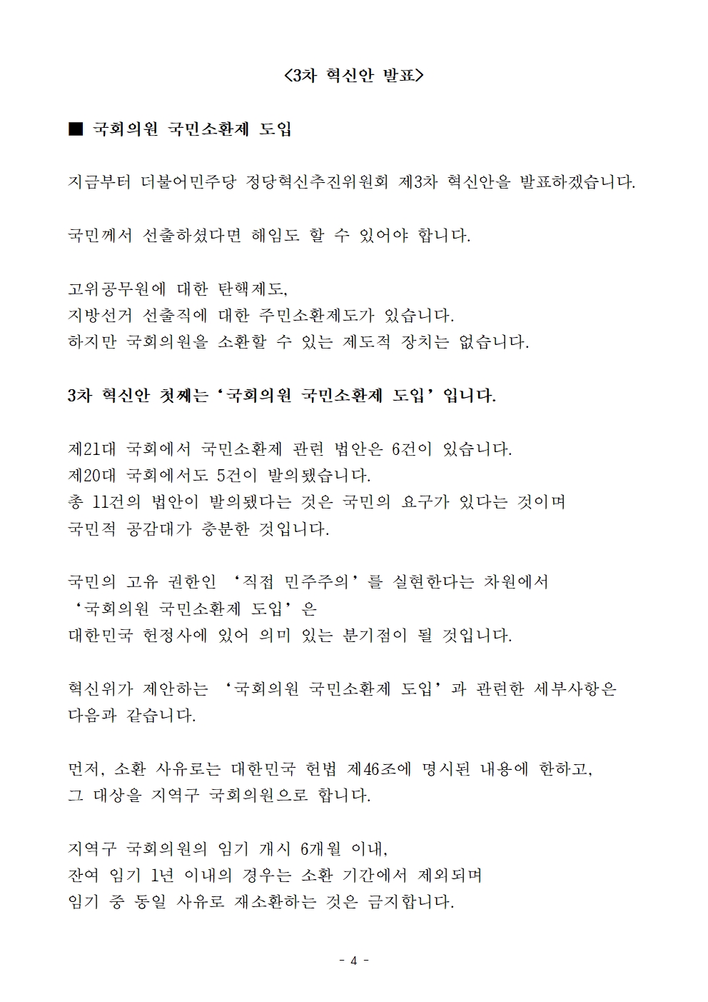 [보도자료] 더불어민주당 정당혁신추진위원회, 제3차 혁신안 발표