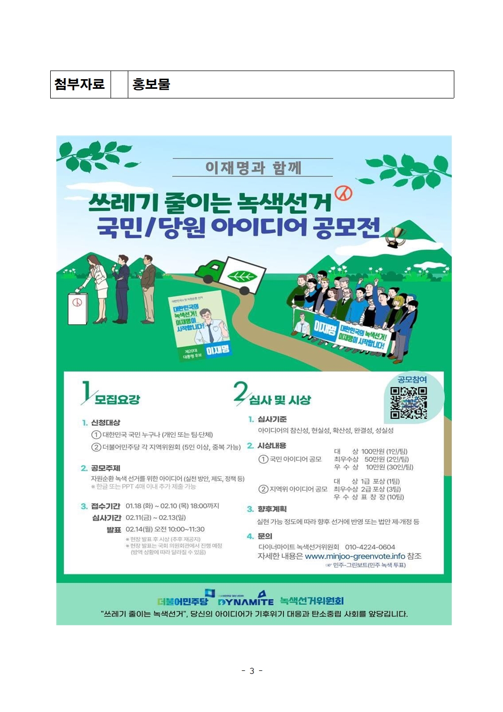 [보도자료] 더불어민주당 다이너마이트 청년선대위, '쓰레기 줄이는 녹색선거 아이디어 공모전' 개최