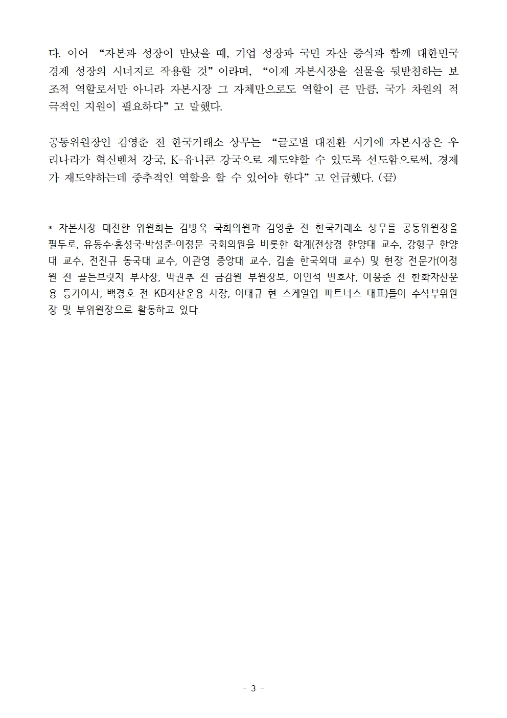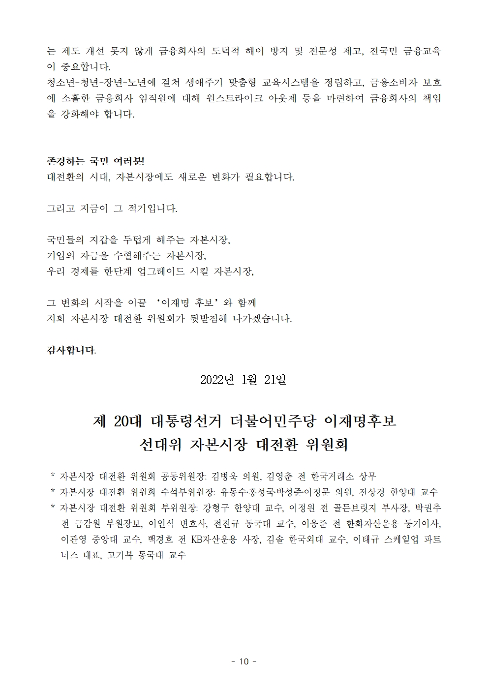 [보도자료] 더불어민주당 선대위 자본시장대전환위원회, 주가지수 5000시대를 위한 자본시장 정책 제안 발표