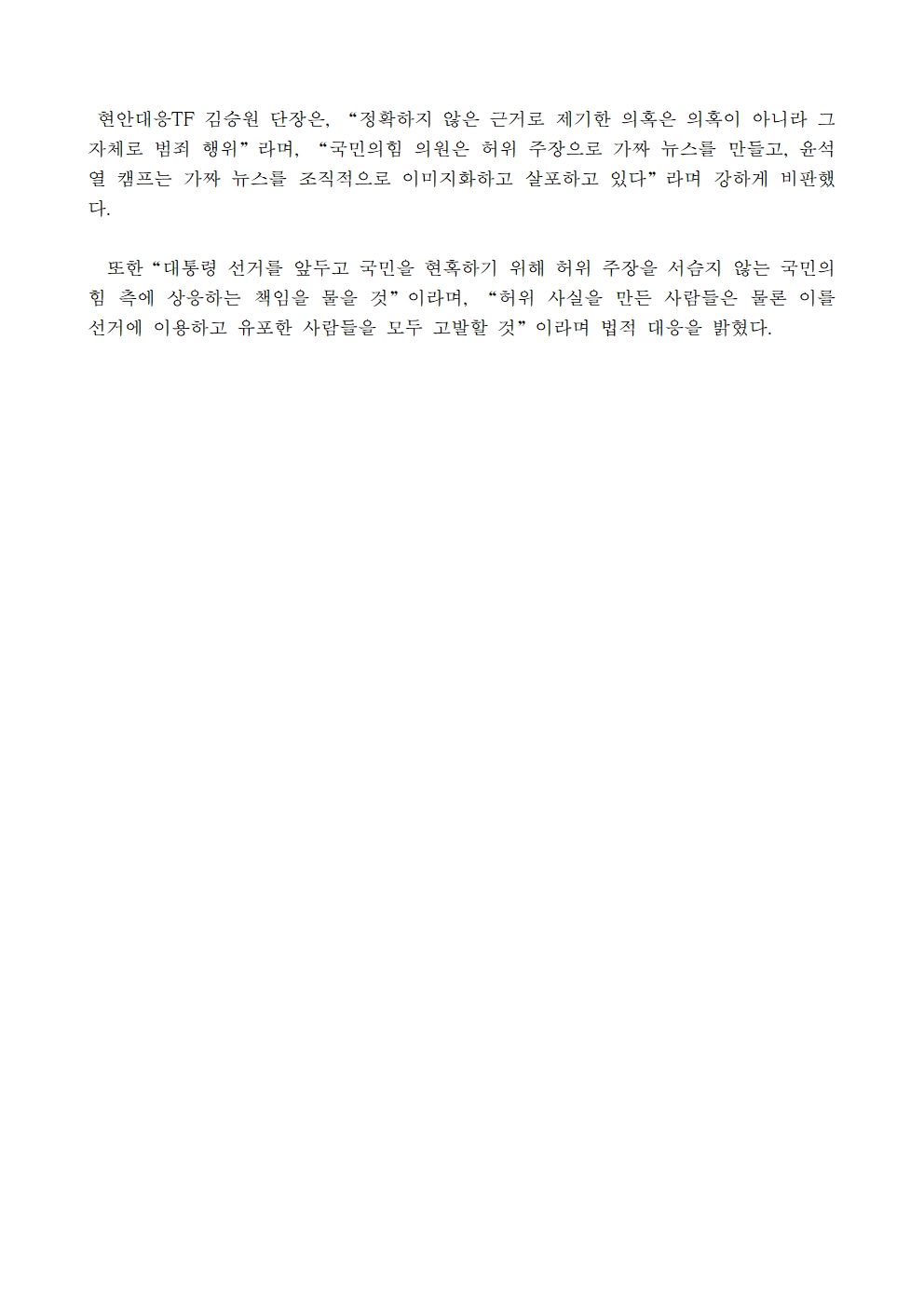 [보도자료] 더불어민주당 선대위 현안대응TF, 이재명 후보 장남 군 복무 중 입원 관련 국민의힘 조직적 가짜뉴스 살포 증거 공개
