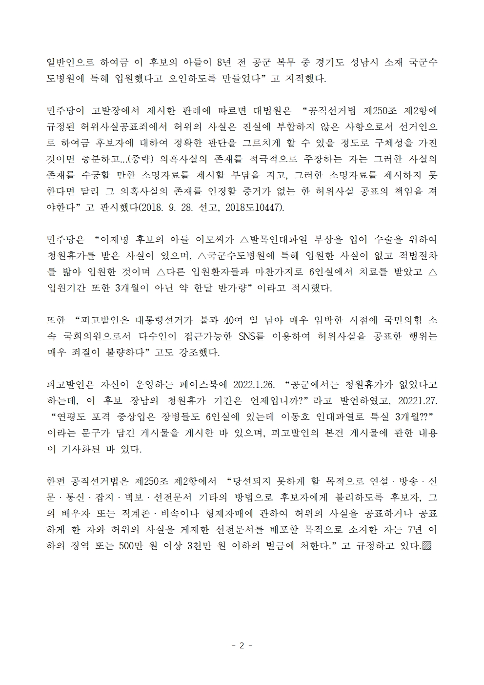 [보도자료] 더불어민주당 선대위 현안대응TF, 이재명 후보 장남 군 복무 중 입원 관련 국민의힘 조직적 가짜뉴스 살포 증거 공개