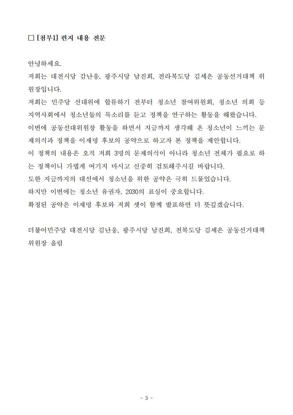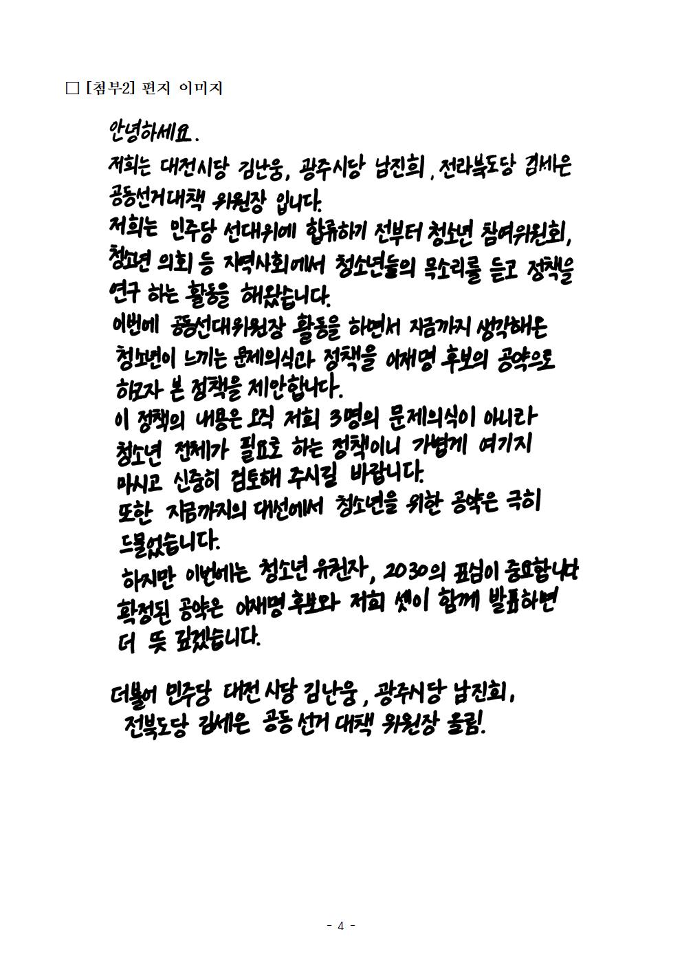 [보도자료] 더불어민주당 선대위 청년과미래정치위원회 청소년 유권자를 위한 정책공약 제안 받아