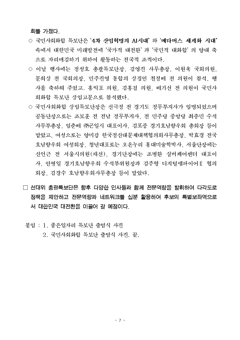[보도자료] 더불어민주당 선대위 총괄특보단, 전문역량별 특보단 출범식 개최 및 필승 결의